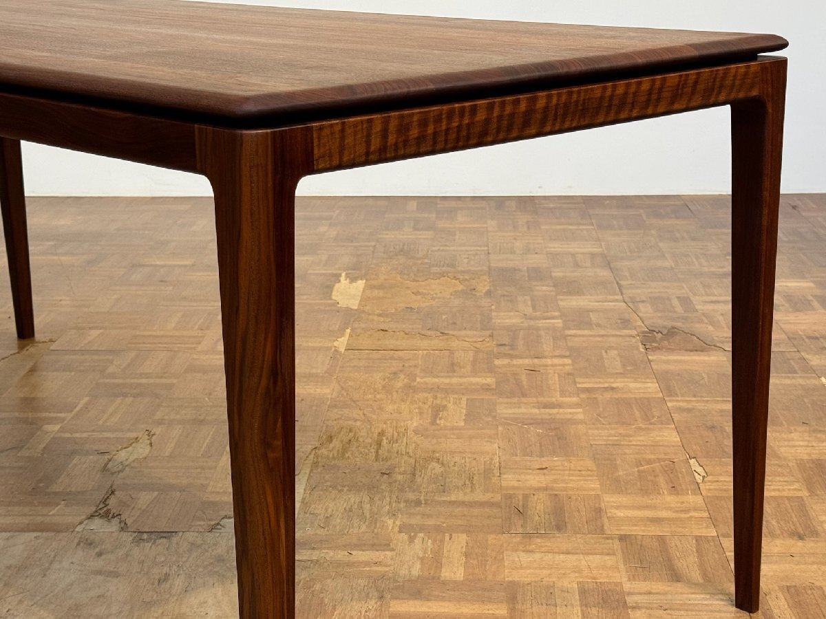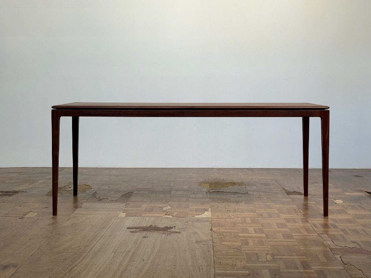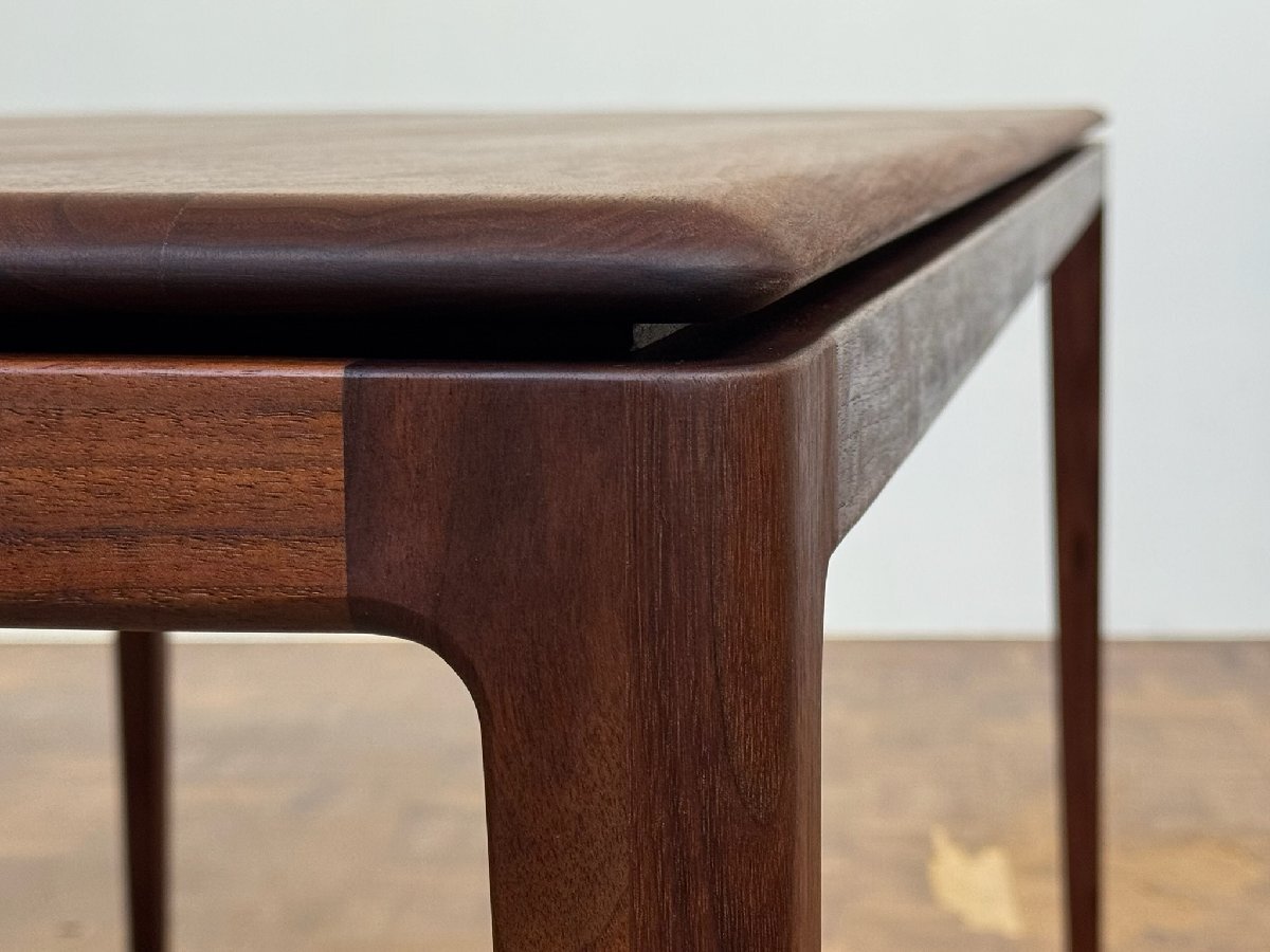 ブランドの誇る最高品質ウォールナット無垢材を、天板を構成するテーブルトップとテーブルフレームをレッグスとの連続性を整えて切り出して組み合わせ、上下の厚みとアールの曲線のコントラストで静かに飾り上げた、ニホンの木工クラフツマンシップの粋をインダストリアルデザインに巧みに踏襲する Time & Style / タイムアンドスタイルならではの大セラーダイニングテーブル。Time & Style より。