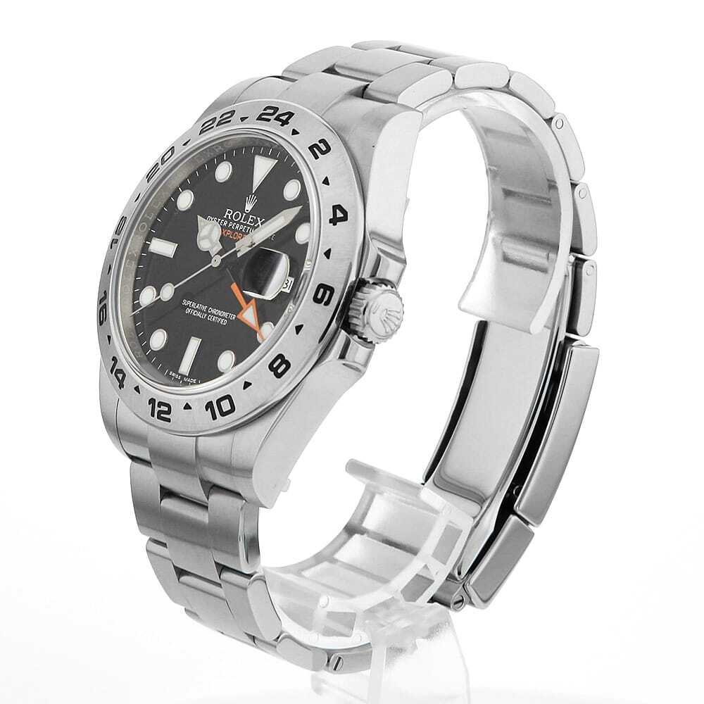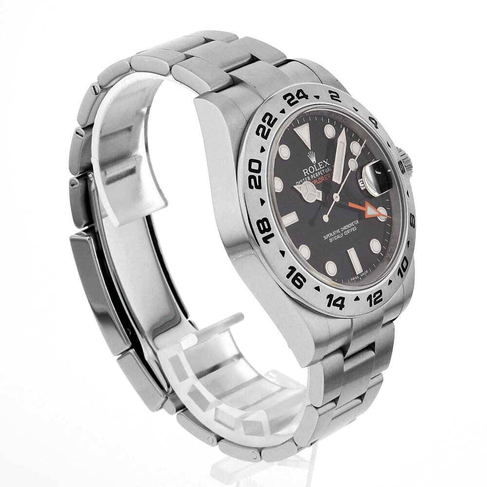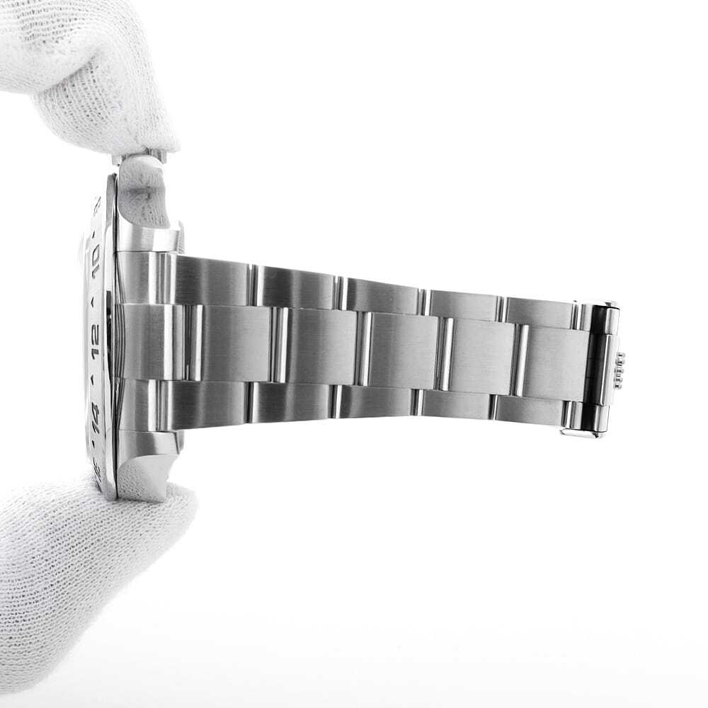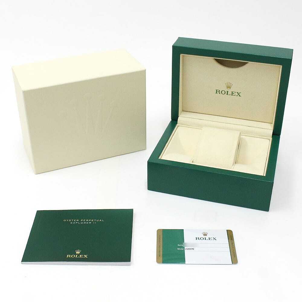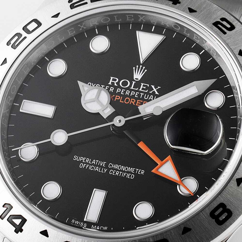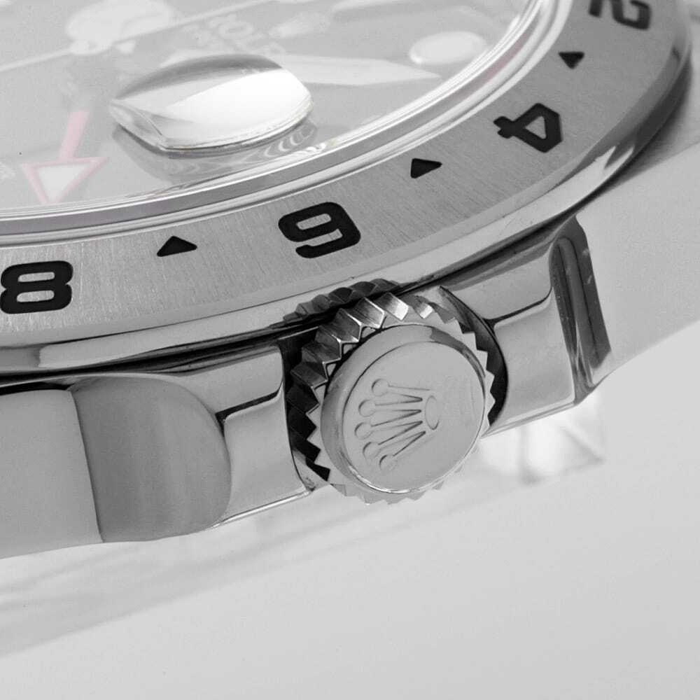 | モデル情報 | 第四世代エクスプローラーIIの入荷です。先代の16570より2mm大きい42mmケースを採用し、さらに存在感が増しています。ムーブメントは耐磁性ブルーパラクロム・ヘアスプリングを使用したCal.3187クロノメーターを搭載。夜光塗料も従来の倍(8時間)の長時間持続性を持っており、各部が着実な進化を遂げました。こちらのモデルは、ブラックとホワイトの二色展開になります。 |