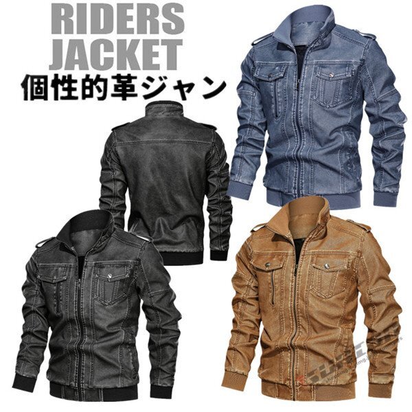 革ジャン レザージャケット メンズ 裏起毛 フライトジャケット バイク PUライダースジャケット カジュアル レザーコート 大き