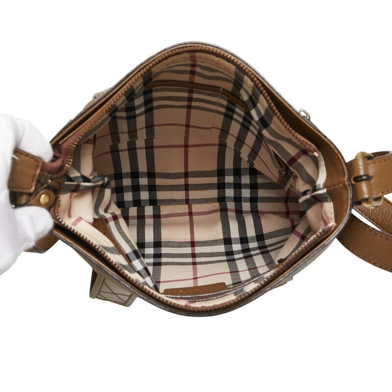 バーバリー ノバチェック ショルダーバッグ ブラウン レザー レディース BURBERRY 【中古】