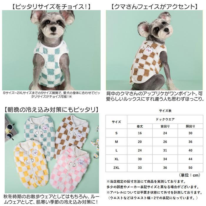 | 商品説明 | ・・【もこもこボアで、寒さに負けない♪】 ・真冬の寒い日だって、元気にお散歩したいワンちゃんに♪「ドッグ用もこもこベスト」が新登場! ・【ふんわり着せて、優しく防寒】 ・表生地も裏地も、ふんわり滑らかなボア素材で仕上げ、肌寒い季節でもぽかぽかと快適な着心地。 ・【豊かな毛足で暖かさをキープ】 ・柔らかな肌触りのボアの毛足が、身体の周りの暖かな空気をしっかりキープして保温性も抜群! ・【スナップボタンでふわっと装着】 ・広げたベストに両前脚を通したら、愛犬の身体をくるっと包みこんで背中のスナップを留めるだけ! ・【手足が短めなワンちゃんにも】 ・よちよち歩く姿が可愛い♪手足が短めのコーギーやフレンチブルドッグも着やすいノースリーブタイプ。 ・【お出掛け前の準備がスムーズ】 ・首輪やハーネスを別に装着しなくても、背中のDカンにリードを接続したらすぐにお散歩にお出掛け! ・※背中のDカンの形状は、カラーによりシングルタイプとダブルタイプの2種類のデザインがあります。 ・【おトイレ楽ちん・ゆったり設計】 ・ワンちゃんがおトイレする時にもたつかない♪お腹周りやお尻が大きく開いたゆったりデザイン。 ・【ご家庭でカンタンお洗濯♪】 ・取り扱いの楽なポリエステル素材なので手軽にお洗濯OK!こまめなお洗濯でいつでも清潔な着心地。 ・【ピッタリサイズをチョイス!】 ・Sサイズ~2XLサイズまでの5サイズ展開で、愛犬の身体に合わせてピッタリサイズがチョイス可能! ・※超小型犬から、胴回り50cm程度までの中型のワンちゃんに最適なサイズ感です。小さなサイズはネコちゃんにもオススメ。 ・【クマさんフェイスがアクセント】 ・背中のクマさんのアップリケがワンポイント。可愛らしいルックスにすれ違う人も思わずほっこり。 ・【朝晩の冷え込み対策にもピッタリ】 ・秋冬時期のお散歩ウェアとしてはもちろん、ルームウェアとして、肌寒い季節の冷え込み対策に! |