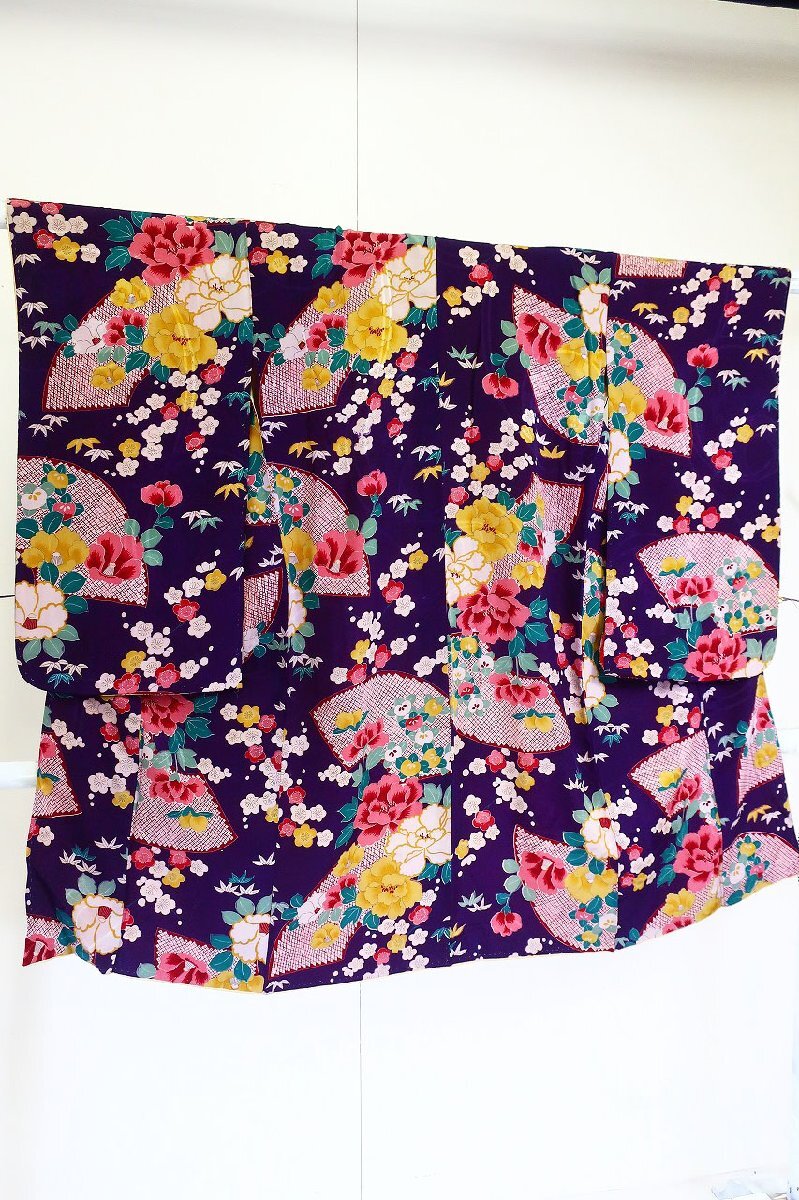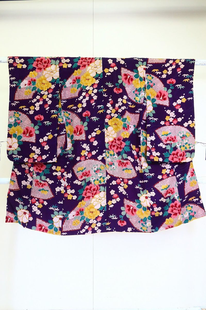 アンティーク 子供 女の子 身丈109cm 紫紺 大正ロマン レトロ 正絹 着物フィ 19976 |