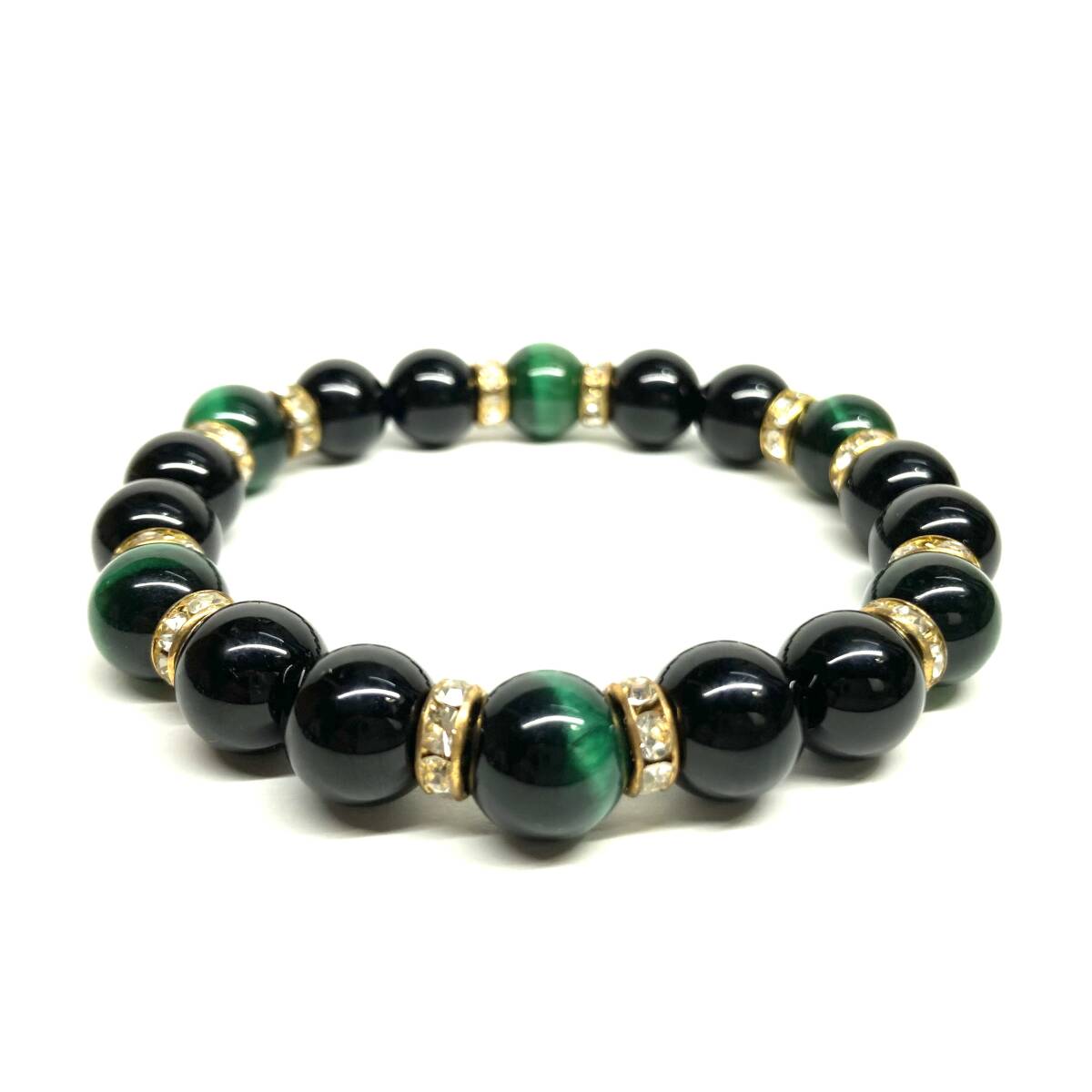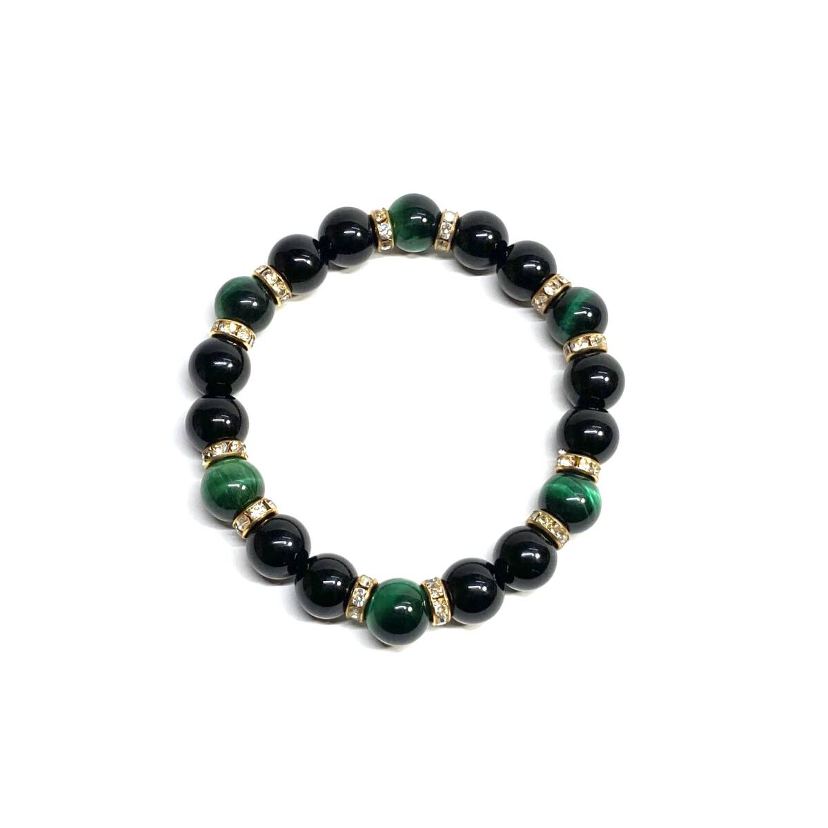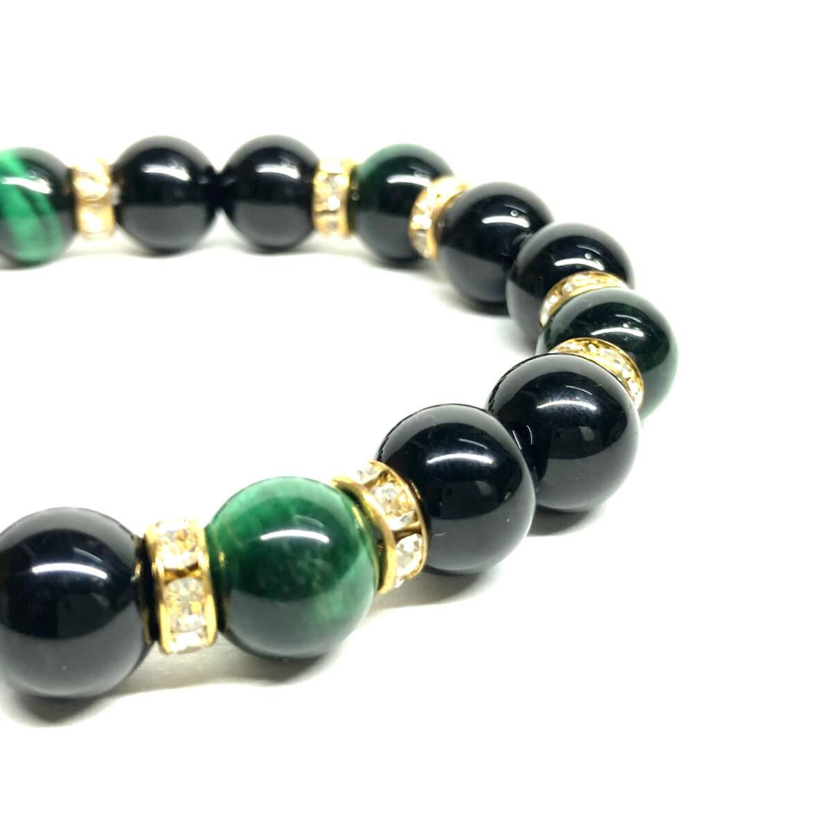 モリオン&グリーンタイガーアイ パワーストーン ブレスレット 天然石ブレス (ゴールド) 10mm メンズ・レディース 厄除け 金運 ☆