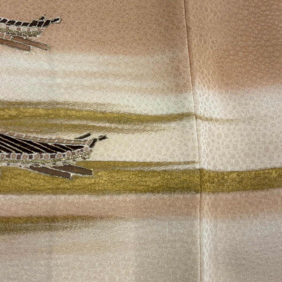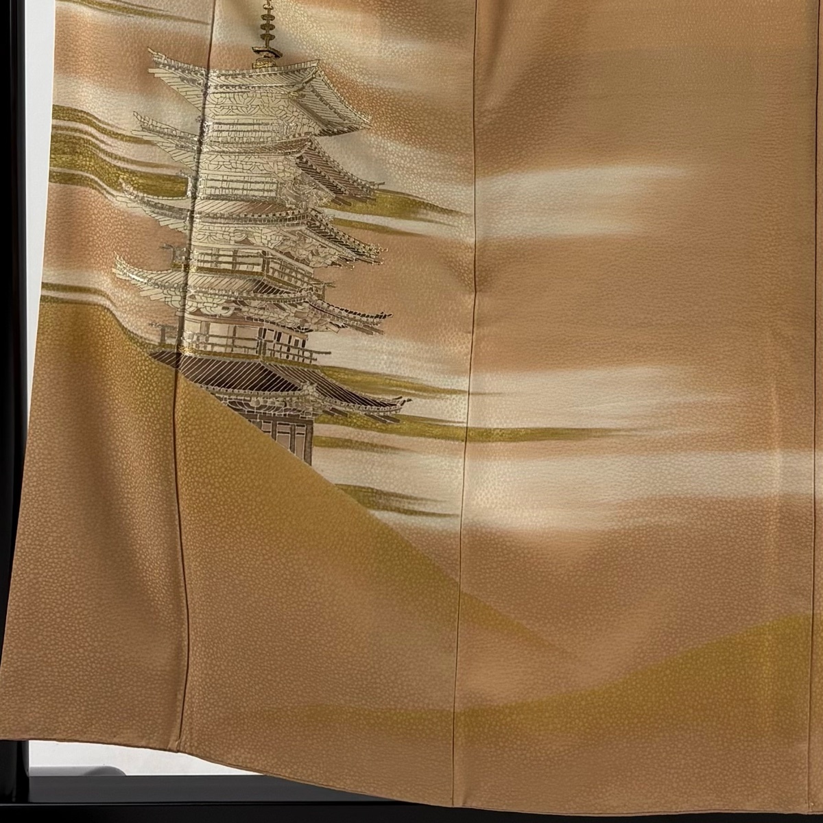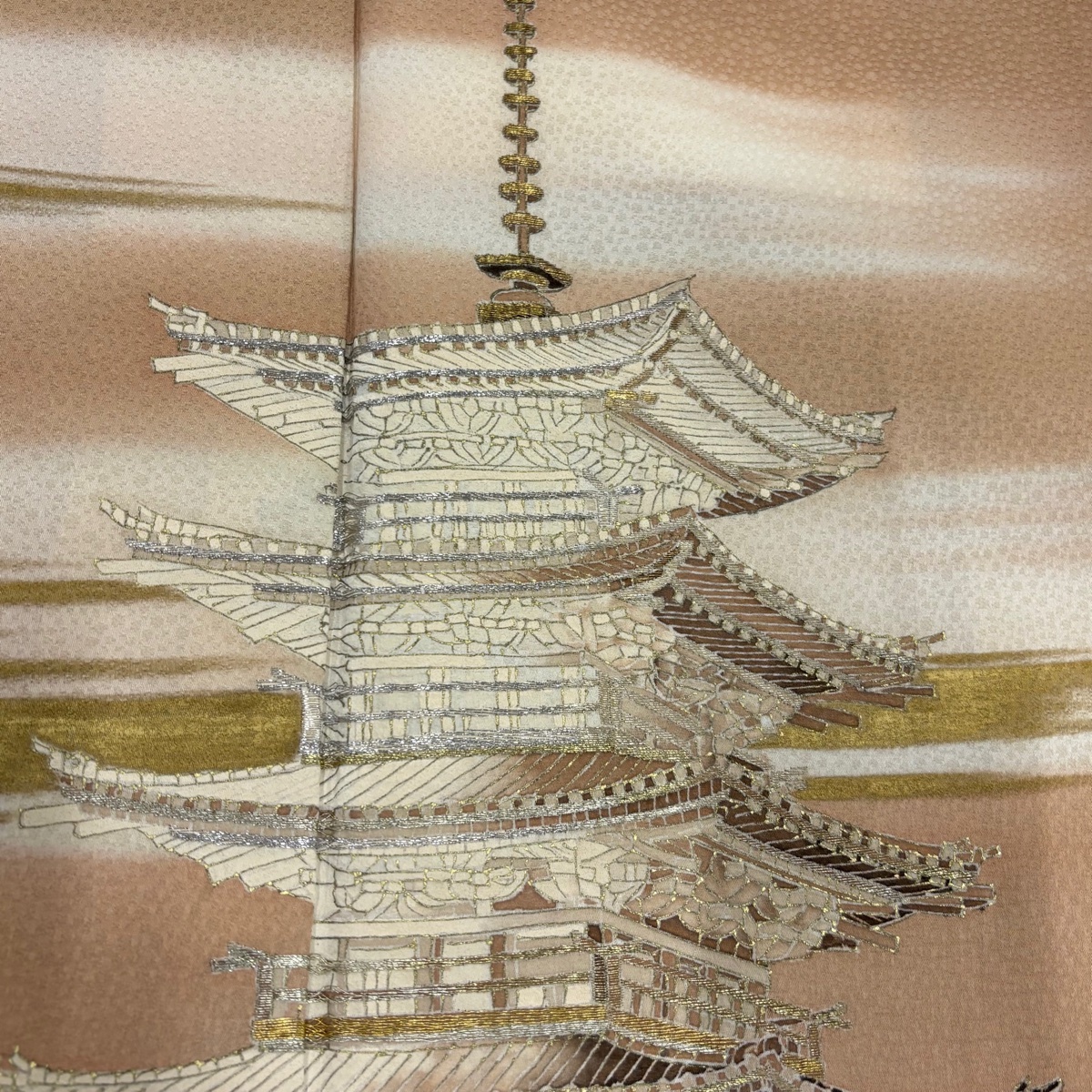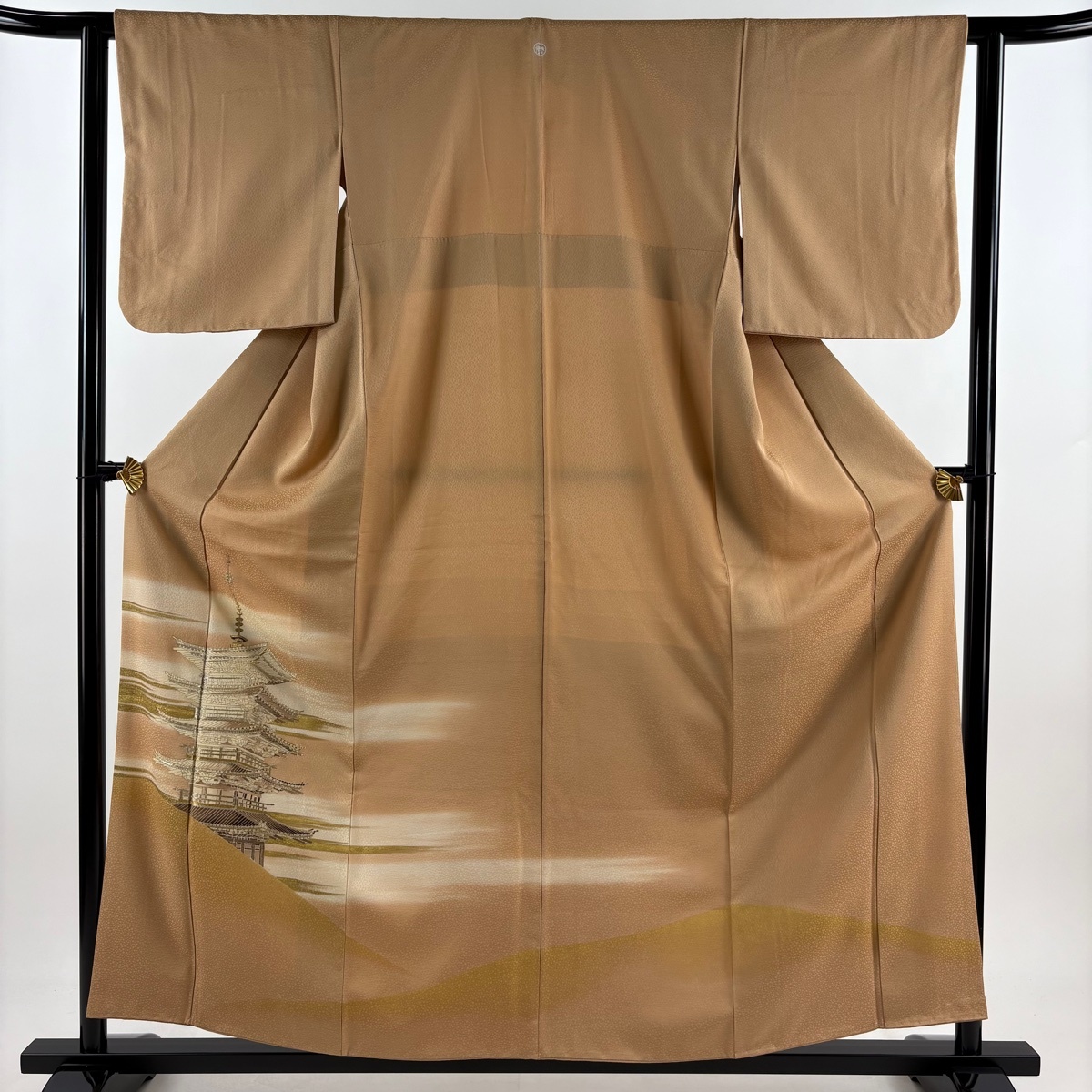 | 色留袖 秀品 五十の塔 霞 金銀糸 金彩 薄茶色 袷 身丈157 裄丈61 S 正絹 【中古】 |