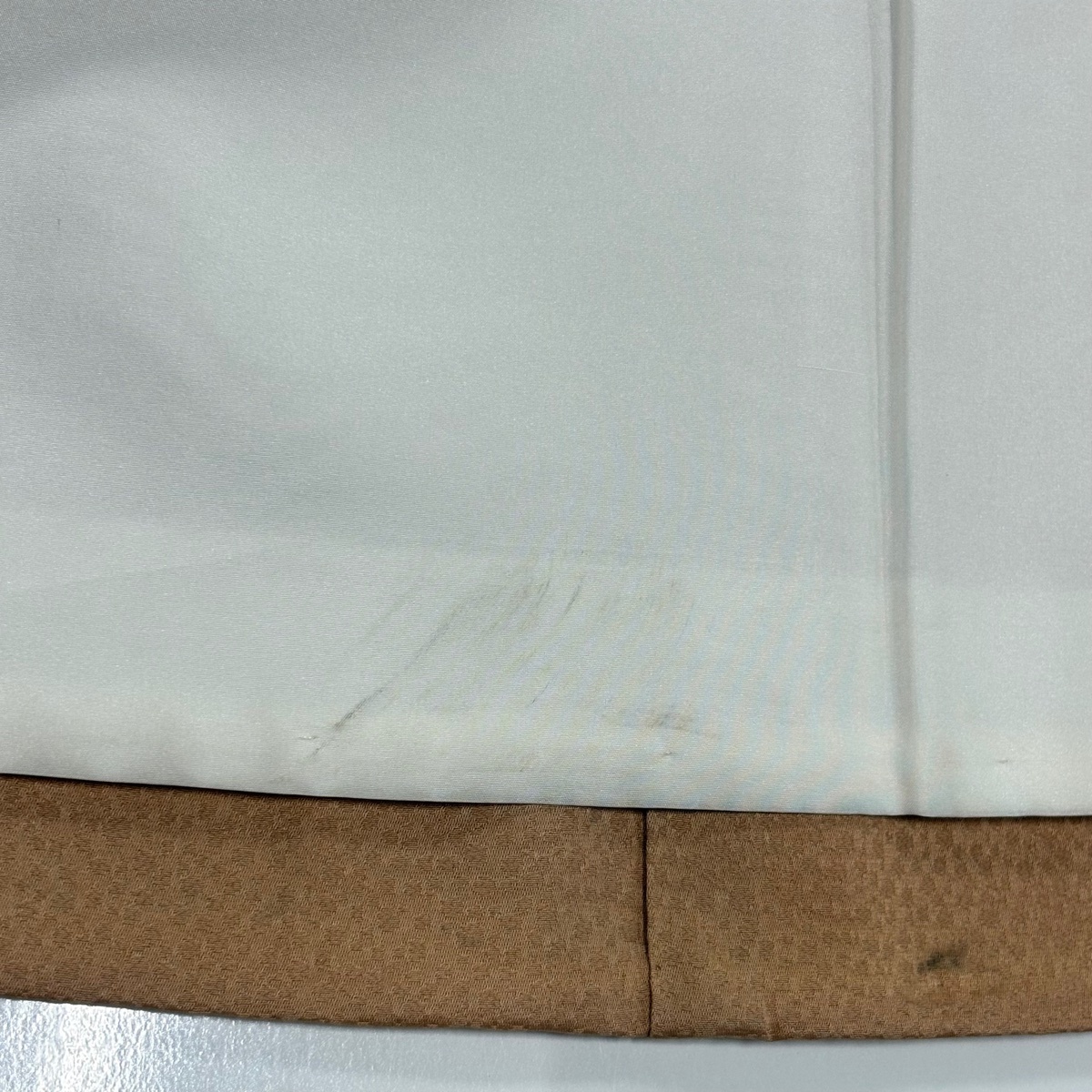 | 既婚、未婚問わず着用できる色留袖でございます。 汎用性が高いお着物となっておりますので、この機会にぜひいかがでしょうか。 一つ紋の染め抜き紋です。 表地所々にヤケ、上前所々と後身頃の所々にシミ、衿周りや両袖口中に薄汚れ、表地所々に金彩の変色がございます。 胴裏にシミ、裏地左脇と胴裏背中に汗シミ、八掛裾部分所々と比翼の八掛の裾所々に汚れがございます。 ご購入の際はその点ご留意ください。 ※なお、厳しく商品の状態確認を行っておりますが、記載の汚れ以外にも見落とし箇所がある可能性がある旨ご了承いただけますと幸いです。 沢山の商品の中からご覧いただき誠にありがとうございます。 【PR2】 |