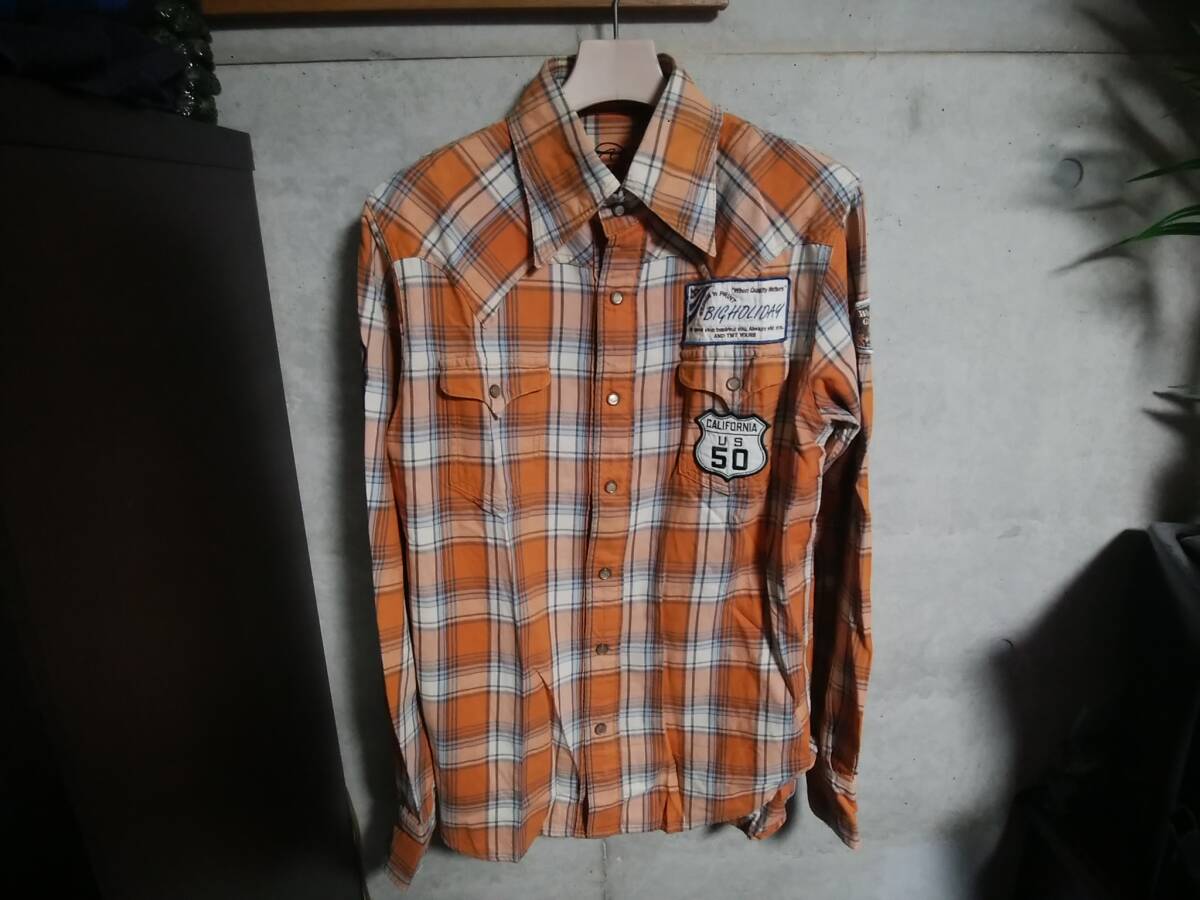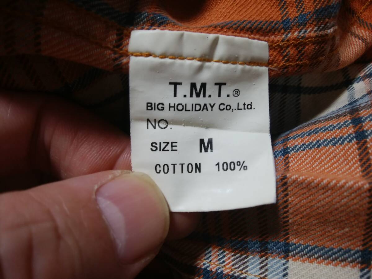 【TMT】ウエスタンチェック柄ネルシャツM 日本製 ワッペン刺繍デザイン入り 長袖チェックシャツ 名作 人気アイテム
