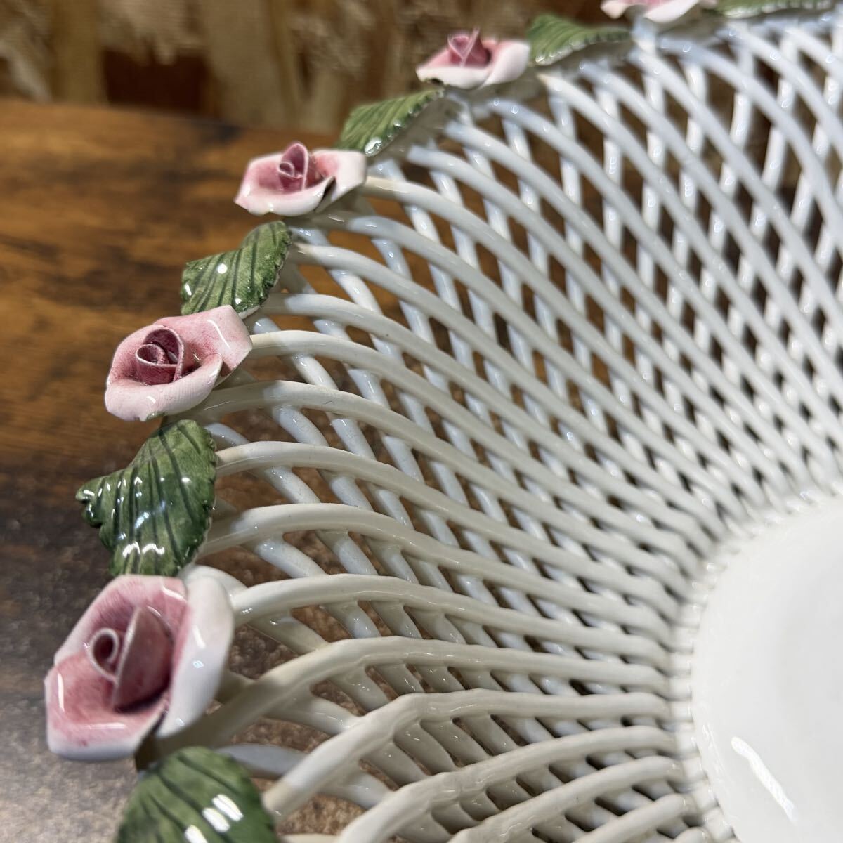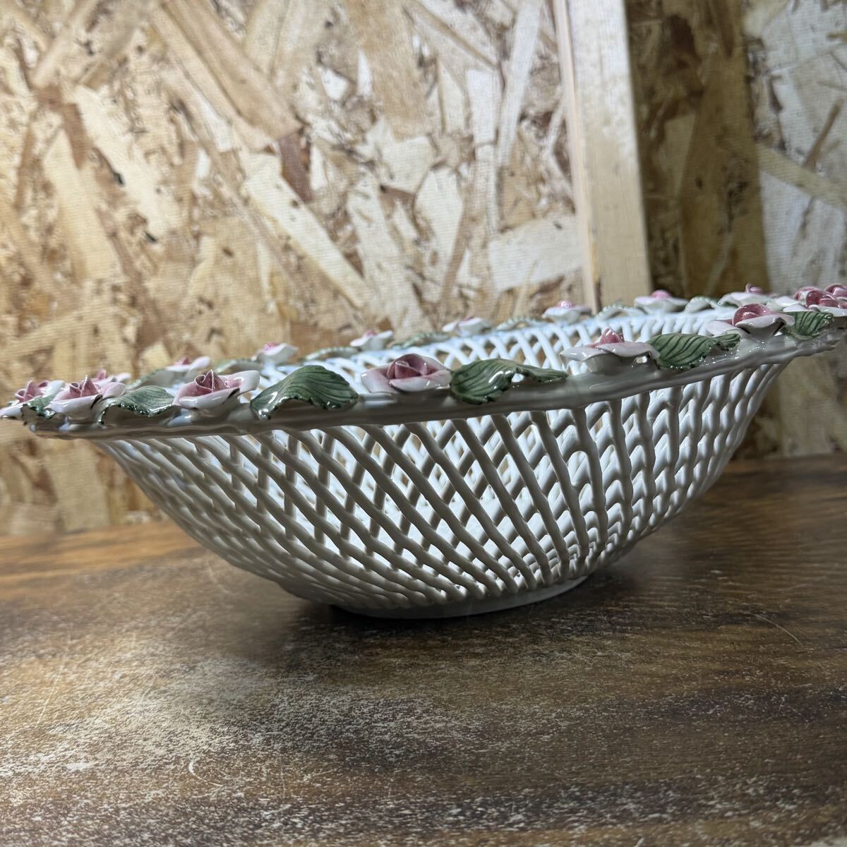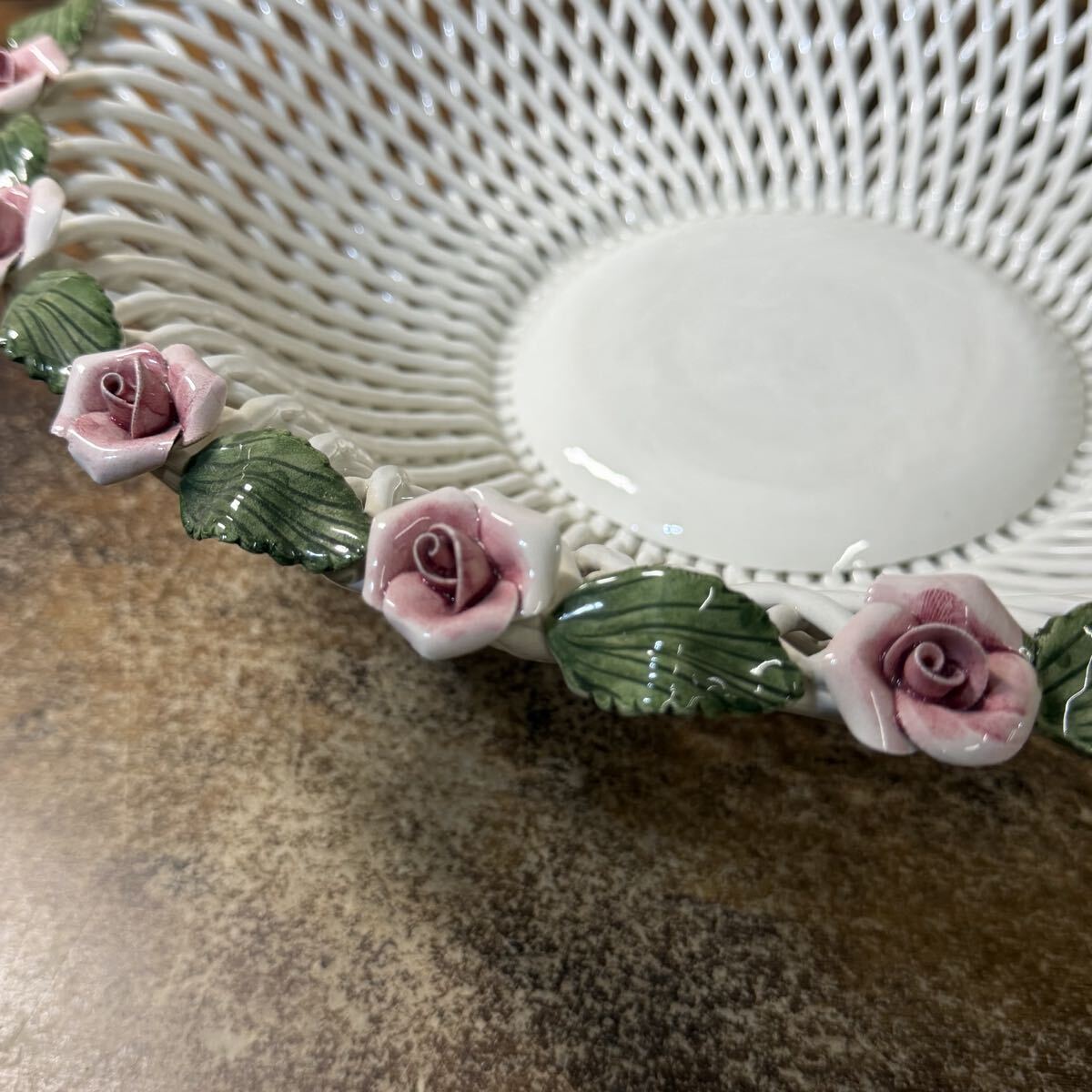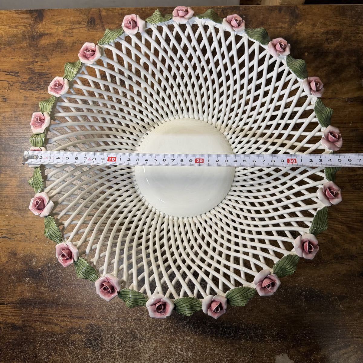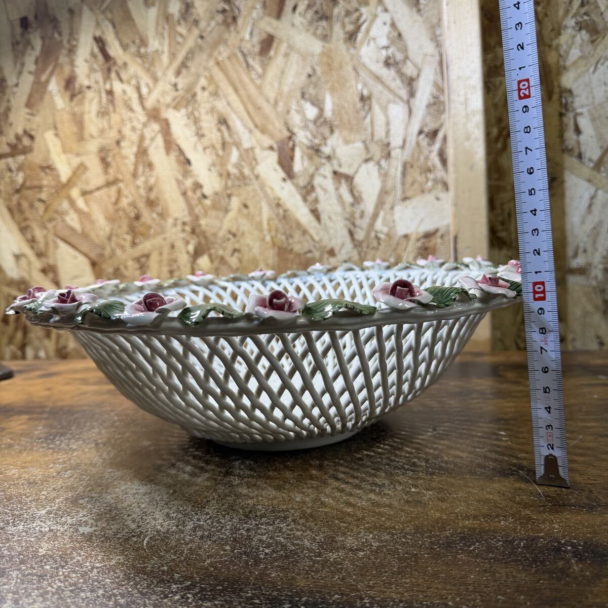イタリア製 Acer Gubbio フルーツバスケット 透かし彫り 陶器 インテリア 洋風 オブジェ 中古品
