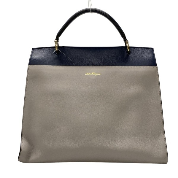 サルバトーレフェラガモ FERRAGAMO/SalvatoreFerragamo ハンドバッグ ガンチーニ レザー グレー×ネイビー バッグ