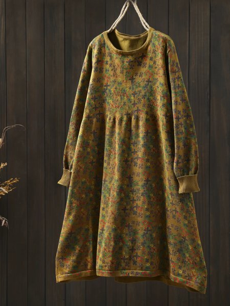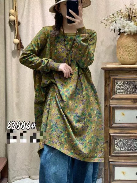 mn 2510 ニット セーター チュニック トップス ゆったり 綿100% ナチュラル 花柄1