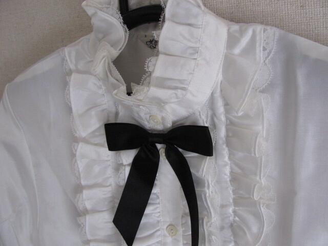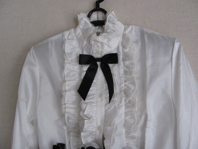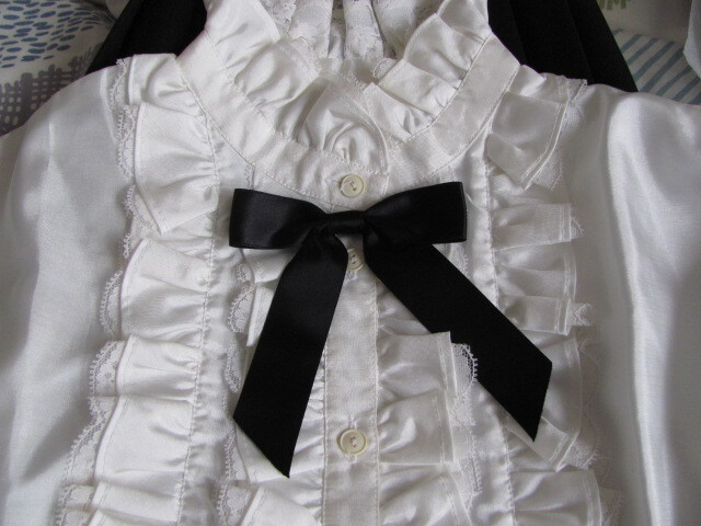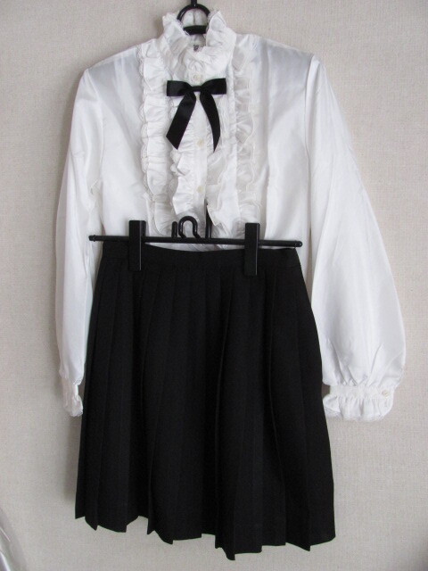 フリルブラウス黒リボン付き と 黒プリーツスカート のセット です。