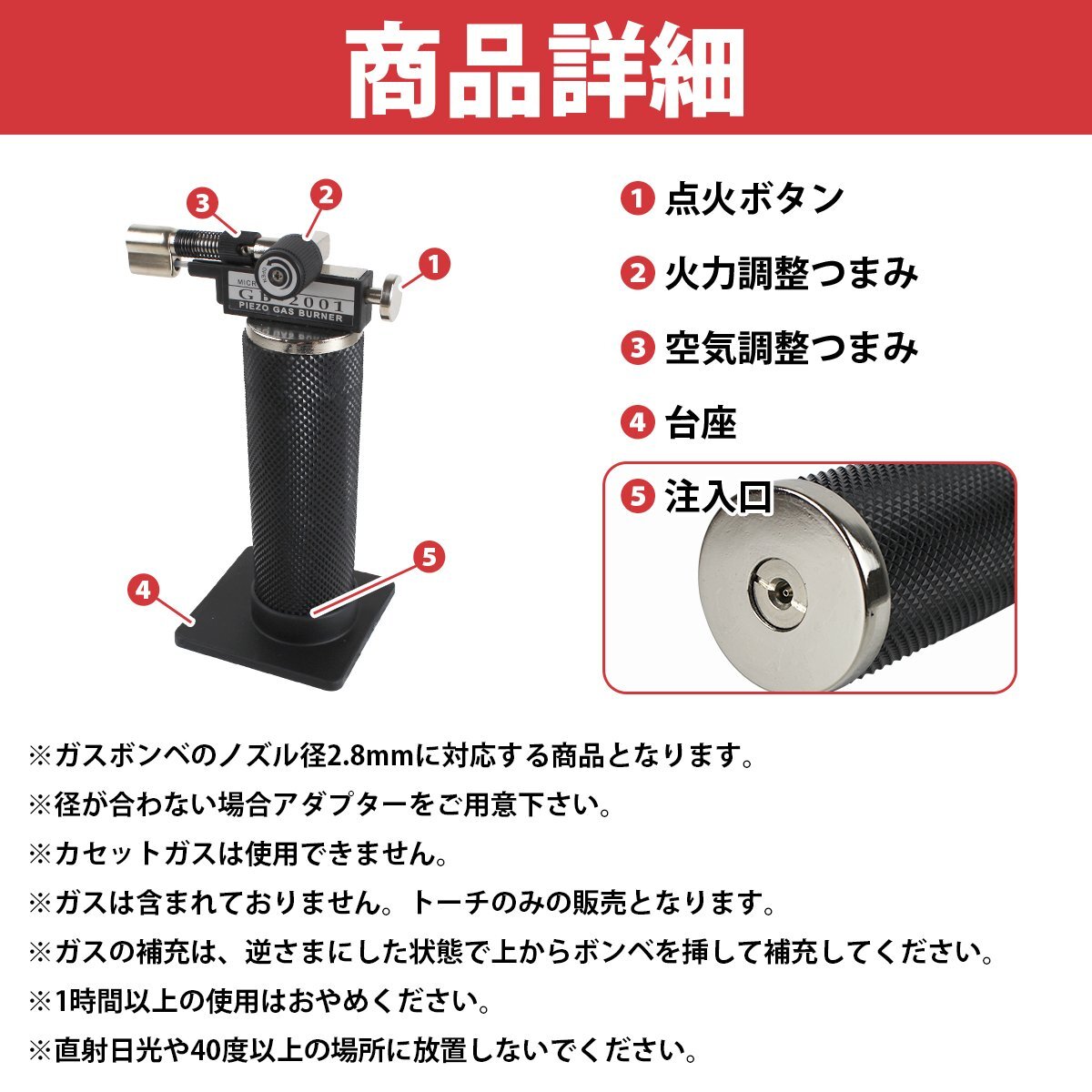 炎温度 1300℃ マイクロトーチ ガスバーナー 溶接トーチ 台座 火力調節 付き DIY アウトドア 火起こし ハンディー トーチ