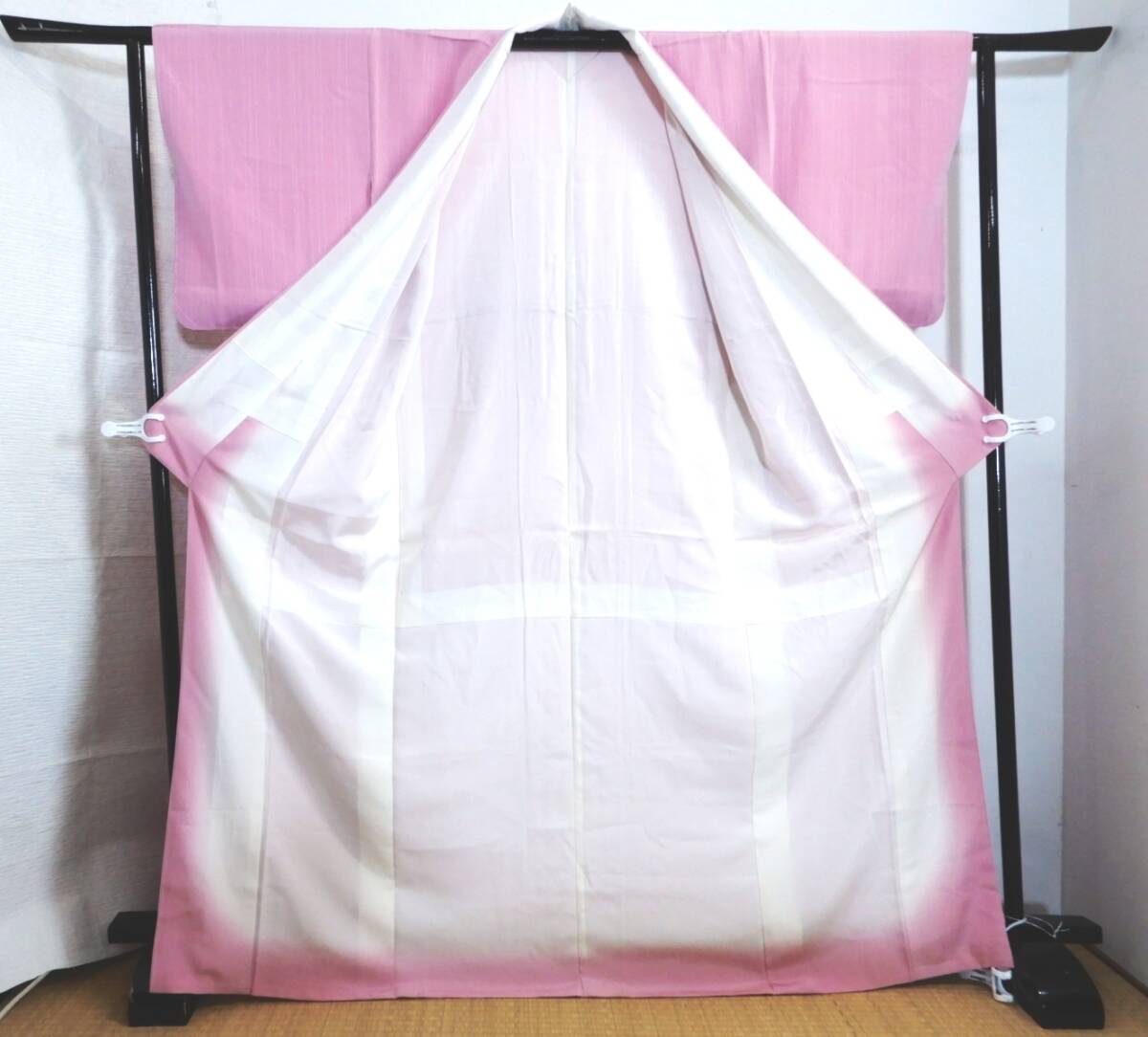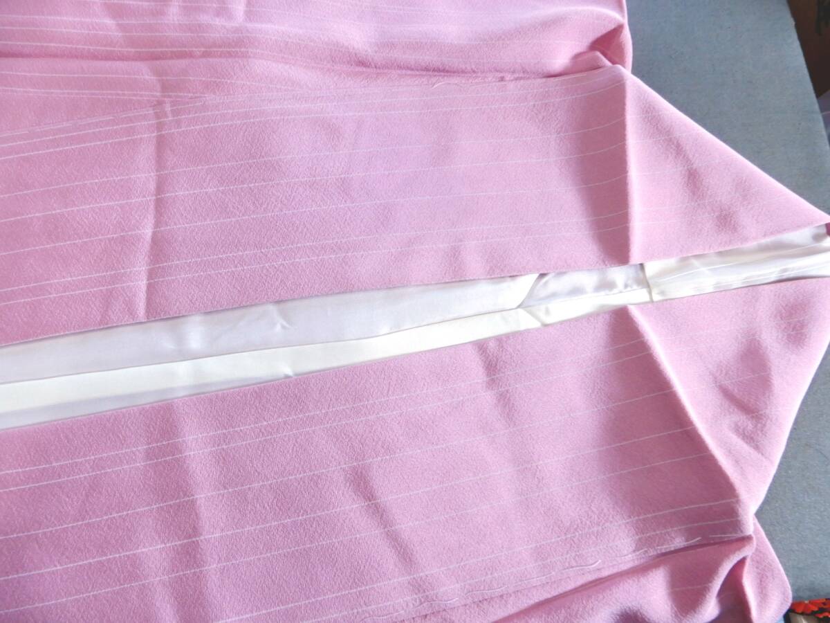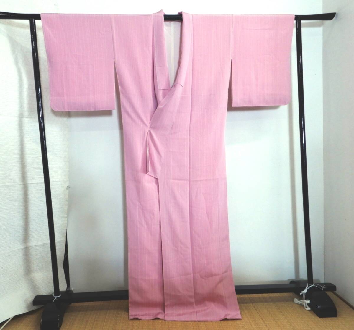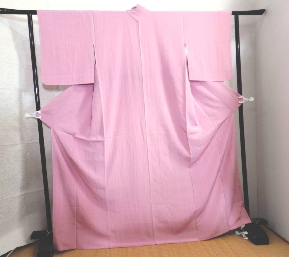 <銀の斧>正絹・桜色の小紋着物・しつけ付き