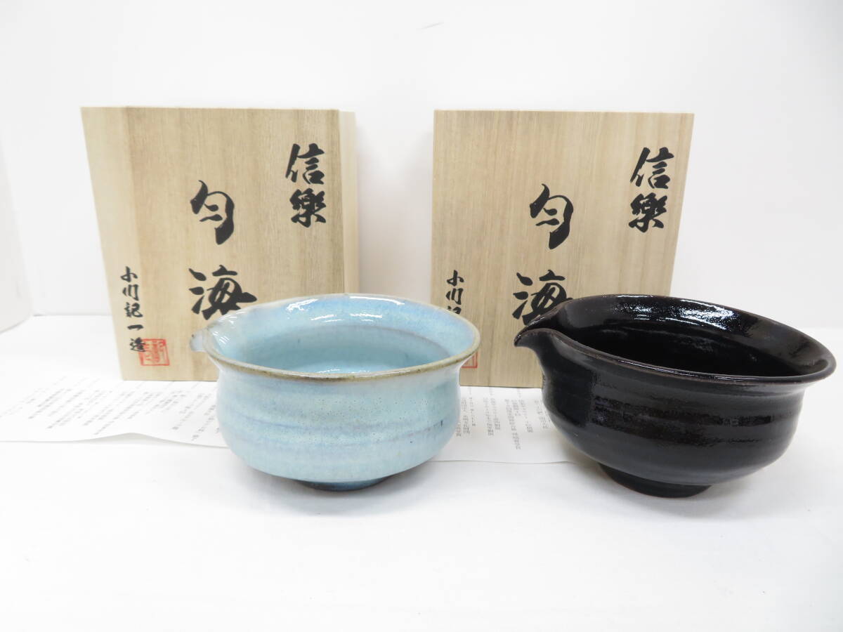 | 10D218◇信楽焼 小川記一 湯冷まし 片口酒器 茶道具 煎茶道具 計2点セット◇未使用品 | |