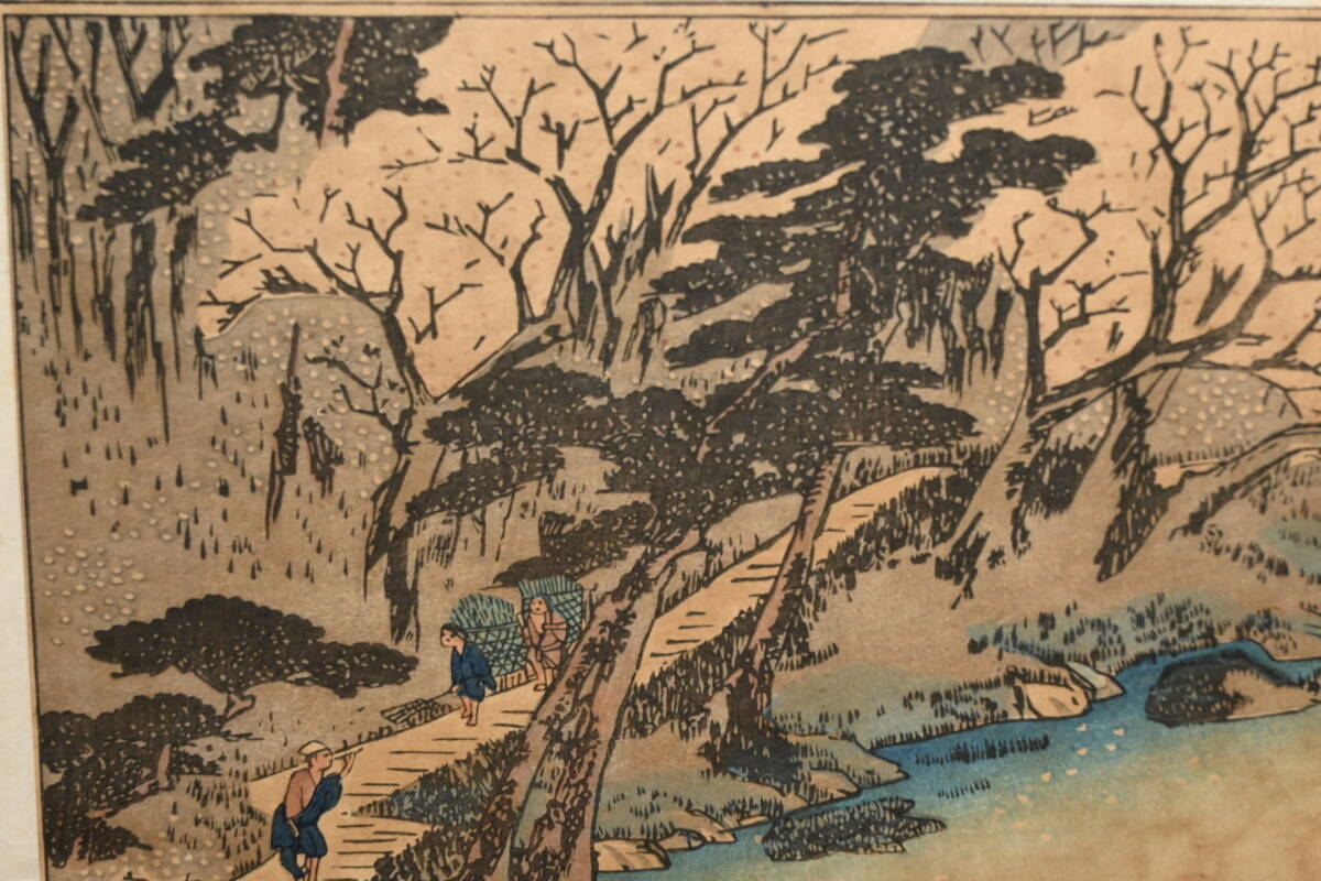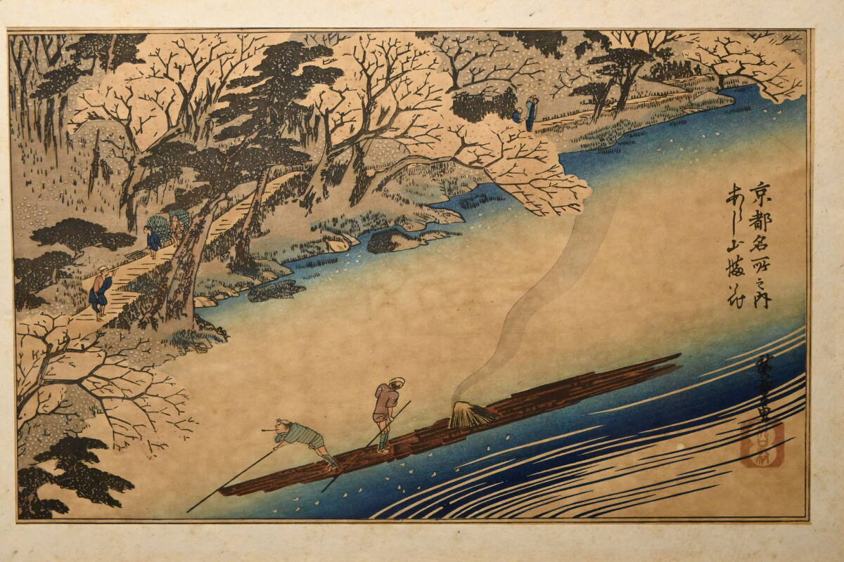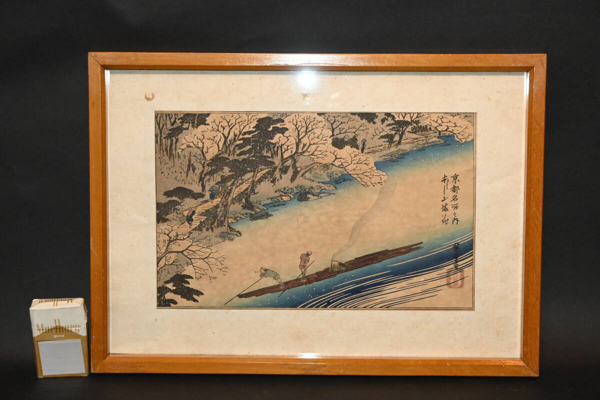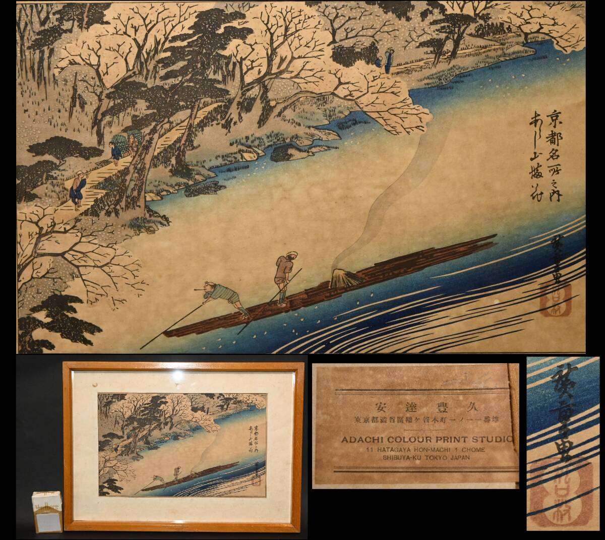 歌川広重 木版画【京都名所之内 あらし山満花】手摺 復刻 浮世絵 版:安達豊久 アダチ版画研究所 紙ラベル 額装 錦絵 京都嵐山 | |||