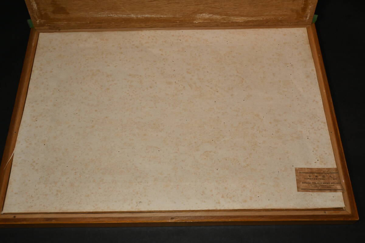 | ★画像・商品説明・注意事項・送付方法等を必ずご確認の上、ご入札をお願い致します★ ■画寸(約):縦 24.2cm × 横 36.9cm ■額寸(約):縦 34.7cm × 横 48.6cm ■作品状態:シミ・ヤケ・汚れ有、状態は画像にてご判断ください。 ■額装状態:スレ・傷・汚れ・反り・有 ※額の裏板はマイナスネジで留っていましたが、撮影の為、外してガムテープで保管しております。発送時も画像の状態(裏板をテープで押さえた状態)になりますのでご了承ください。 経年品・長期保管品である為、画像をよくご覧になった上で、ご判断下さいますよう宜しくお願い致します。 画像と実物が撮影時の照明の兼ね合いで違う場合がございますので、ご了承ください。 ※額、以外の付属品はございません。 | |||
