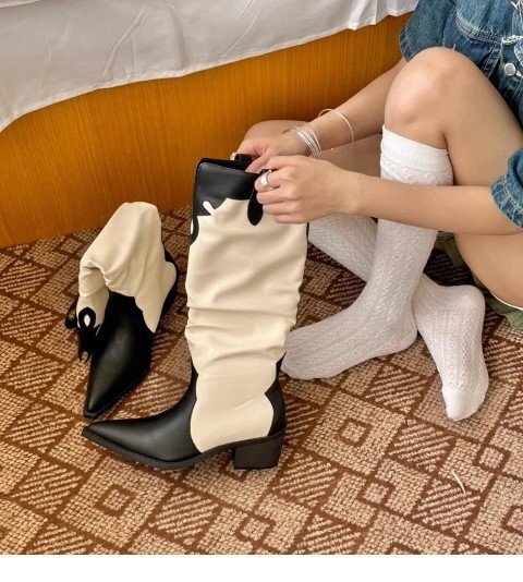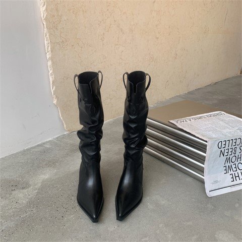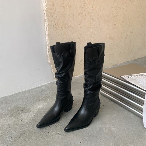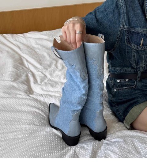 ロングブーツ ポインテッドトゥ 西部カウボーイブーツ レディースシューズ 【36】23cm ブルー