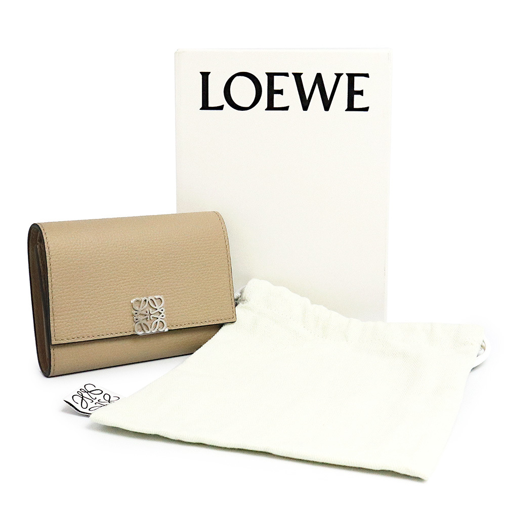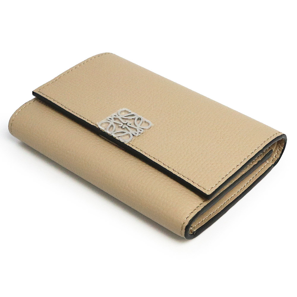 (新品・未使用品)ロエベ LOEWE アナグラム バーティカル ウォレット スモール 三つ折り財布 カーフレザー ベージュ C821S33X12 箱付