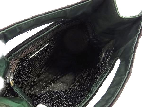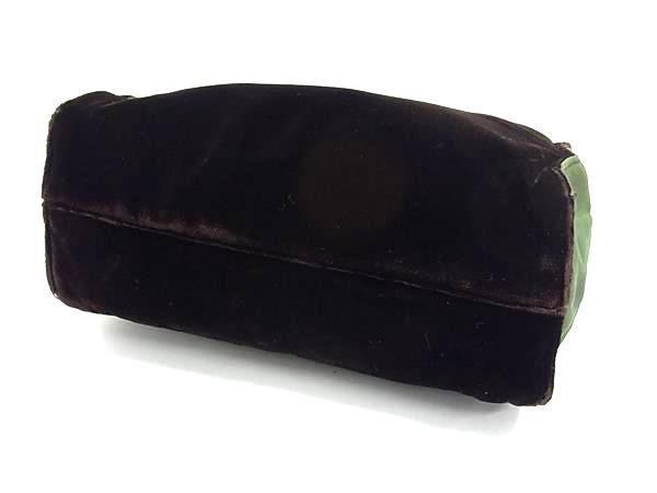 1円 PRADA プラダ ベロア×テスートナイロン ハンドバッグ トートバッグ レディース ブラウン系×カーキ系 FN6808
