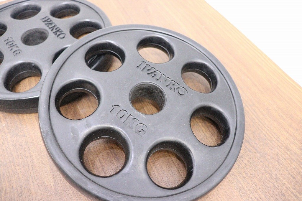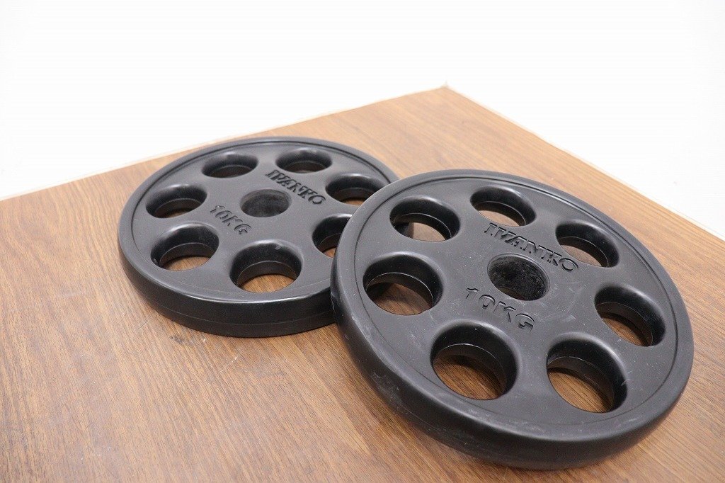 IVANKO◆オリンピックラバーダンベル◆10kg×2枚◆計20kg◆ウェイトトレーニング◆径50mm◆現状品◆筋トレ | ||