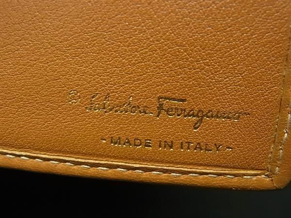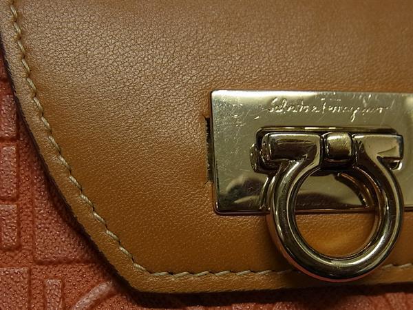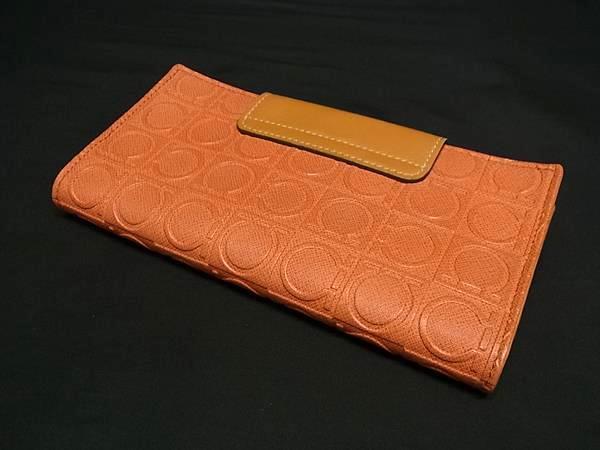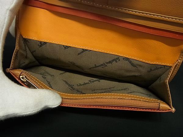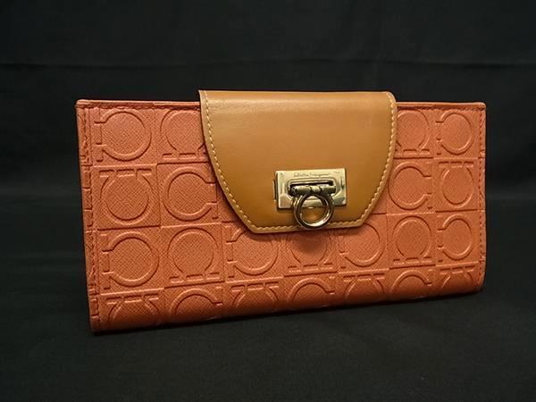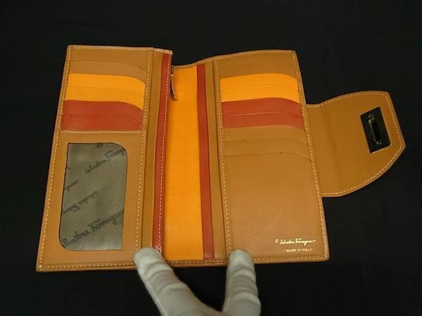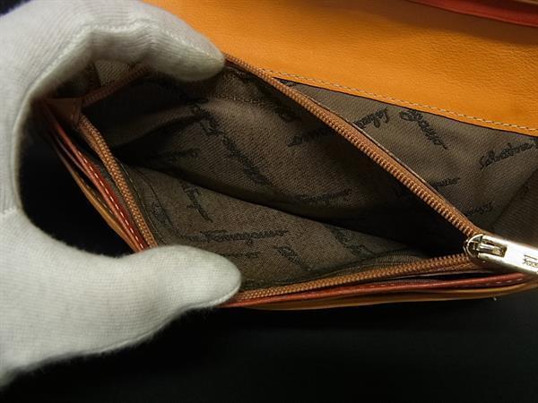 1円■美品■Salvatore Ferragamo フェラガモ IR-22 4209 ガンチーニ柄 レザー 二つ折り 長財布 ウォレット オレンジ系×ベージュ系 FV2480