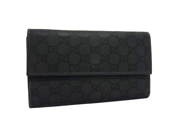 1円 ■美品■ GUCCI グッチ 257303 GG柄 GGキャンバス×レザー 三つ折り 長財布 ウォレット 札入れ 小銭入れ ブラック系 FV2513