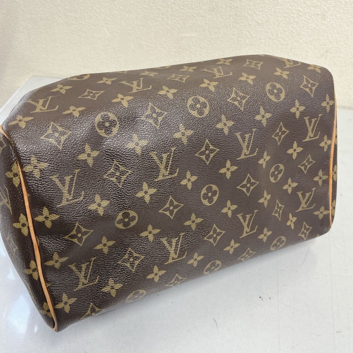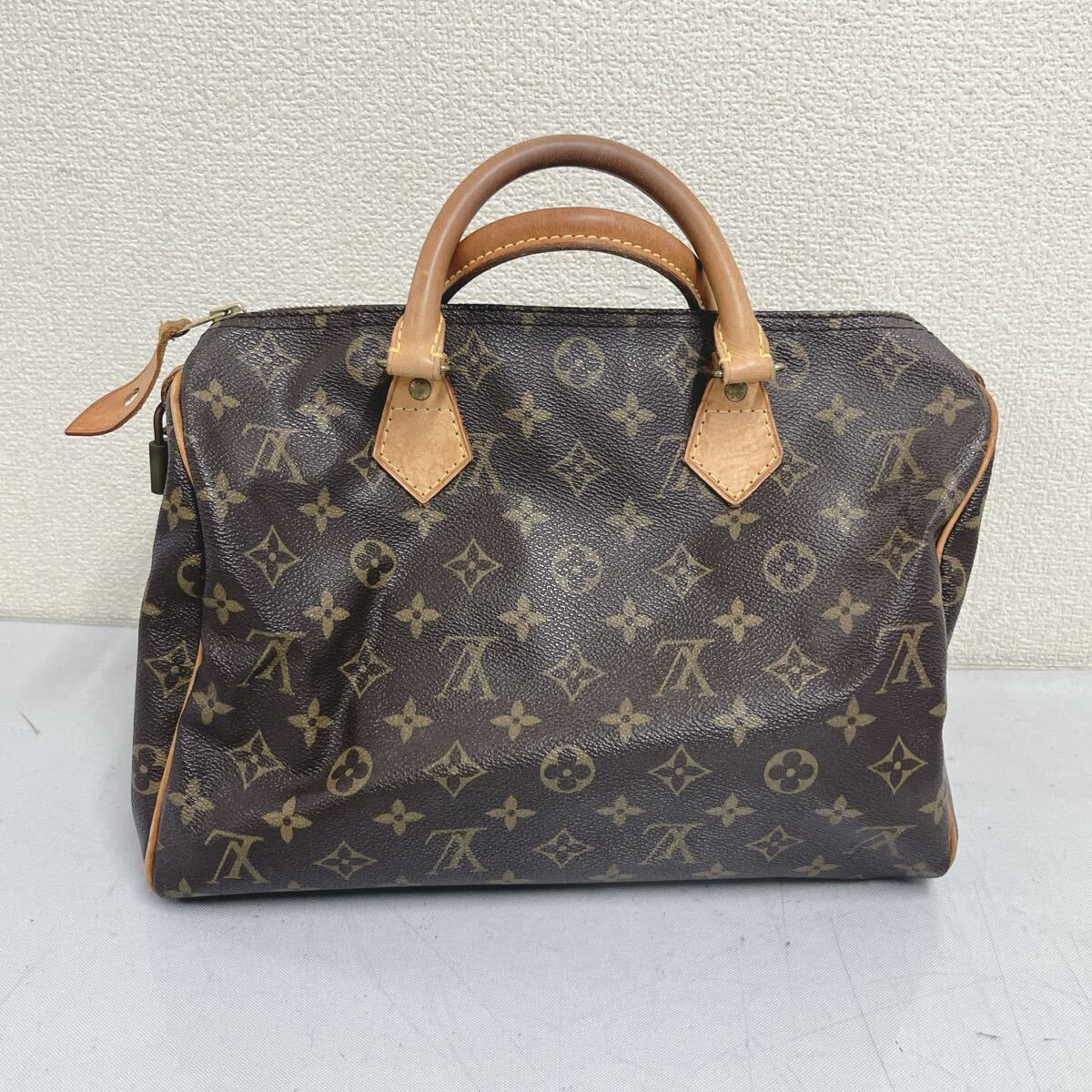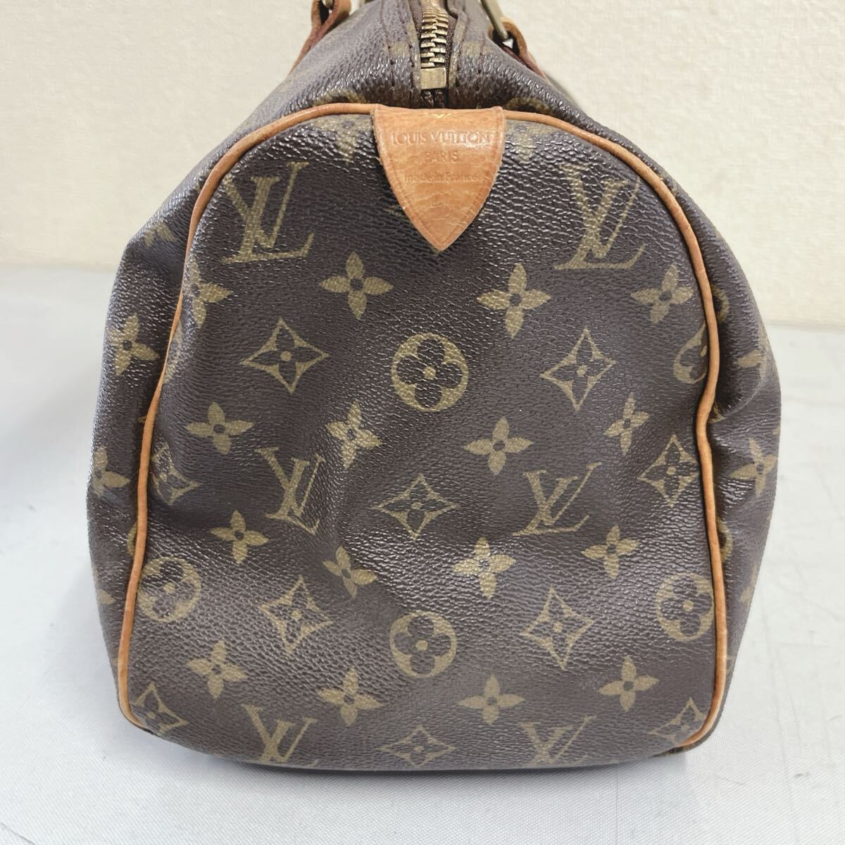 ヌメ革に焼け、シミ、スレがございます。