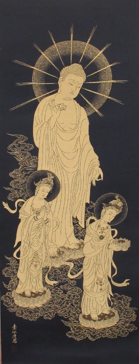 ★商品説明・詳細など★ | ■福田素仙 三尊佛図 共箱 掛軸 掛け軸 仏画 二重箱 西陣織 仏教絵画 仏教美術 仏像 茶掛軸 壁掛 検:本金 *商品落札後のお支払期限は4日以内とさせていただきます。 4日を過ぎるとキャンセルとなり、自動的に【悪い】の 評価がつきますので御注意下さい。 ご理解の程、宜しくお願い致します。 ■USED品 ・全体に薄ヤケや薄汚れがあります。 その他、ヨレ等があります。 ・裏面にはシミがあります。 ・神経質な方はご入札をお控え下さい。 ・箱にはキズや打痕があります。 ■西陣織 ■全体(軸先含む):縦190 横69cm ■本紙:縦124 横48cm (素人採寸の為、参考程度にお考えください。) ≪商品発送サイズ≫ ゆうパック 【 100サイズ 】での商品発送です。 【発送元:石川県】 【配送料】はこちら→ ゆうパック送料(郵便局公式HP 180サイズ以上30kg以上の配送は佐川急便のみの配送となります。 【配送料】はこちら→ 佐川急便 飛脚宅配便送料(佐川急便公式HP) ※ゆうパック及び佐川急便公式HPで送料を明記してある場合は送料に関するご質問はお答えできません。 ●画像に映っているものが商品及び付属品の全てです。他に付属品はございません。 ●オークション落札後の品の状態等の質問はお答えできません。必ず入札前に質問をお願いします。 ●商品説明と商品画像に相違がある場合は画像優先にてご判断ください。 ●商品の状態は説明欄、商品画像にてご確認くださいませ。 ●送料や配送方法、商品の状態をご確認の上お客様のご判断でご入札をお願いいたします。 ≪絵画の出品に関するルール改定≫当店も新ルールにしたがい絵画の出品方法を一部変更致しました。 ●(1)特定の作者の作品としている場合は、真作または模写と明記すること。 ●(2)特定の作者の真作としている場合は、万が一真作でない場合に返品を受ける旨を商品説明に明記すること。 ●(1)について、真作でないものは、最悪第三者による模写の可能性があるため、全て模写として出品いたします。 ●真作を出品する場合は、真作であることを明記し、万が一真作でない際には返品を受ける旨を商品説明に明記すること。(ノークレーム・ノーリターンの対象外商品です。) |