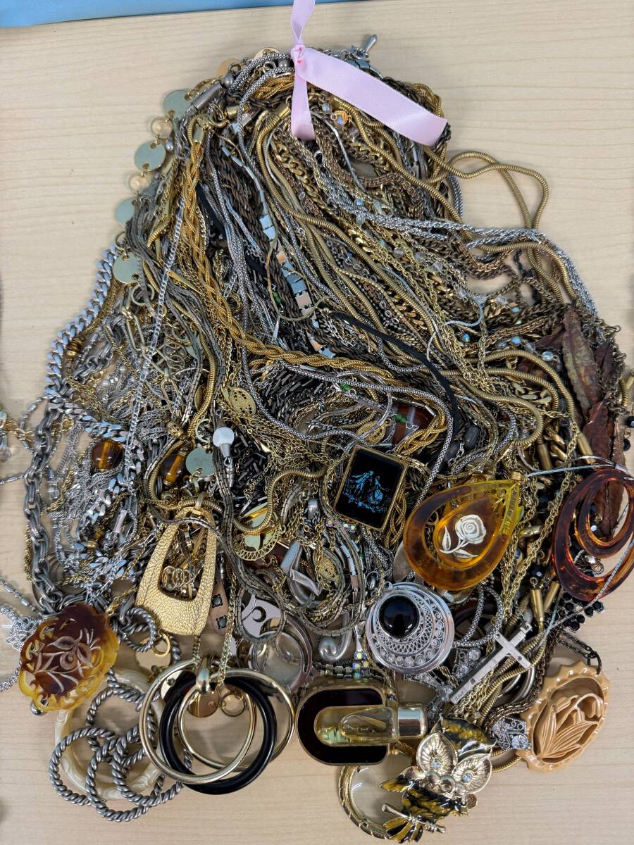ご覧いただき誠にありがとうございます。 アクセサリー いろいろまとめて 約7.5kg 天然石 パール ネックレス イヤリング ブローチ 他 全て保管品です。 汚れ、錆、金具の壊れなど経年の劣化がある物も含まれます。 状態などは画像をご覧になりご納得の上入札をお願いいたします。 発送は佐川急便80サイズ 北海道発です。 送料は下記をご参照ください。 たくさんのご入札をよろしくお願いいたします。 | |