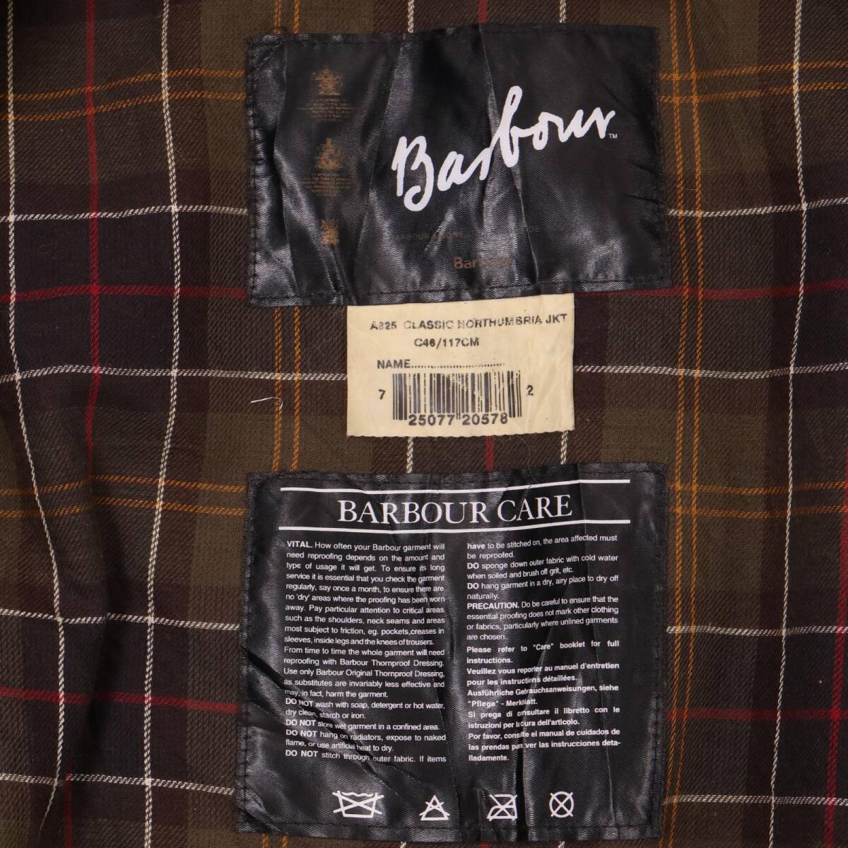 | 【商品管理番号】 A0166 【ブランド】 Barbour/バブアー 【サイズ】 46 【実寸サイズ】 肩幅:約53cm 着丈:約91.5cm 身幅:約66cm 袖丈:約64cm 【主な素材】 表地 : コットン 【色】 カーキ 【仕様】 00年代 ライナー接続可能 NORTHUMBRIA ノーザンブリア 【状態】 特記事項: 全体的に使用感と左ポケット装飾にわずかな欠損がございます。着用に問題はございません。 | |||