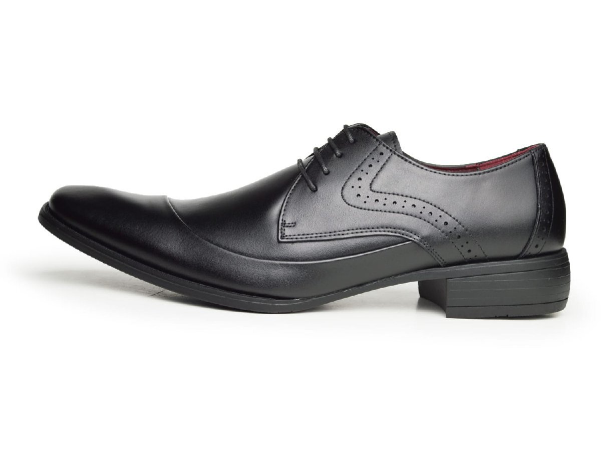 新品■26cm ビジネスシューズ 革靴 レースUP ストレートチップ ライン 脚長 スクエアトゥ ロングノーズ 2E 日本製 フォーマル 紳士靴