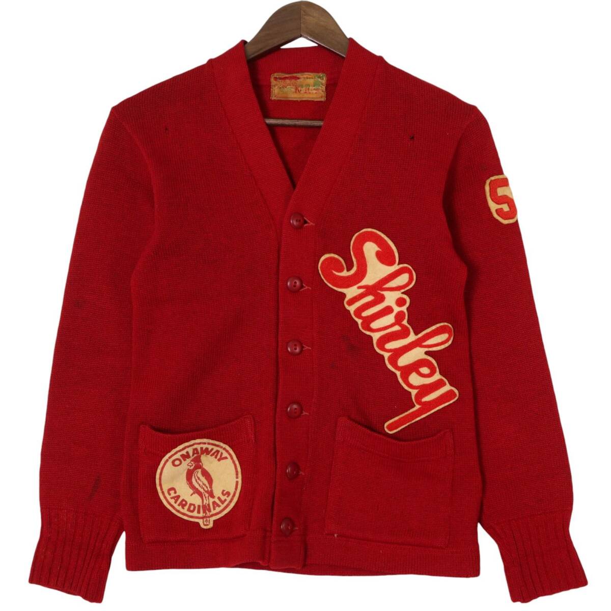| 【商品管理番号】 A1490 【サイズ】 XS相当 【実寸サイズ】 肩幅:約42cm 着丈:約57cm 身幅:約43cm 袖丈:約55cm 【主な素材】 表地 : ウール 【色】 レッド 【仕様】 50年代 ヴィンテージ 57139 【状態】 特記事項: 全体的に薄い汚れと小さな穴、タグにやぶれがございます。着用に問題はございません。 | |||