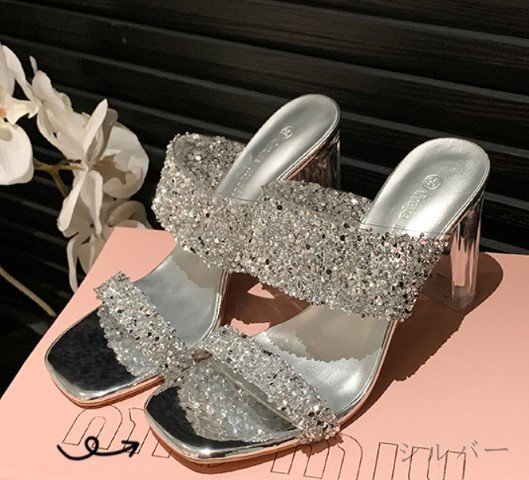 【高品質】全2色 ビーチサンダル ミュール 太いヒール 切り替え sweet系 37 ゴールド