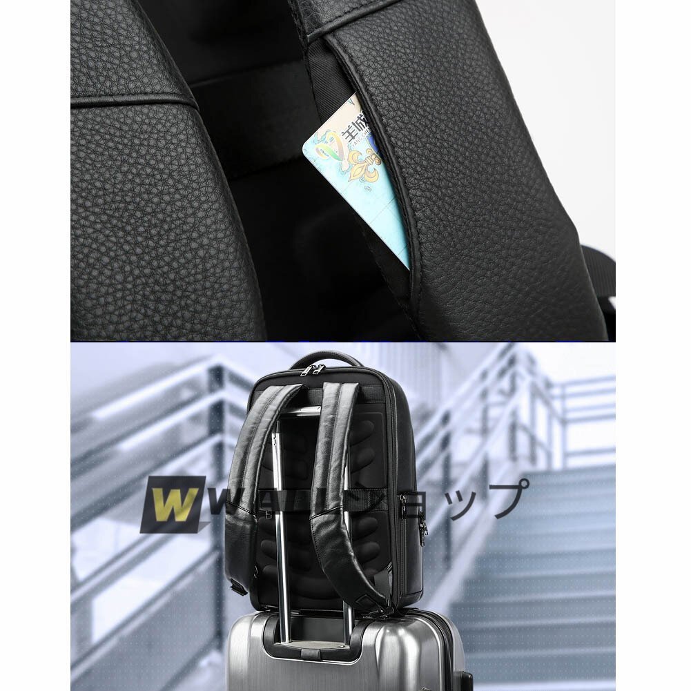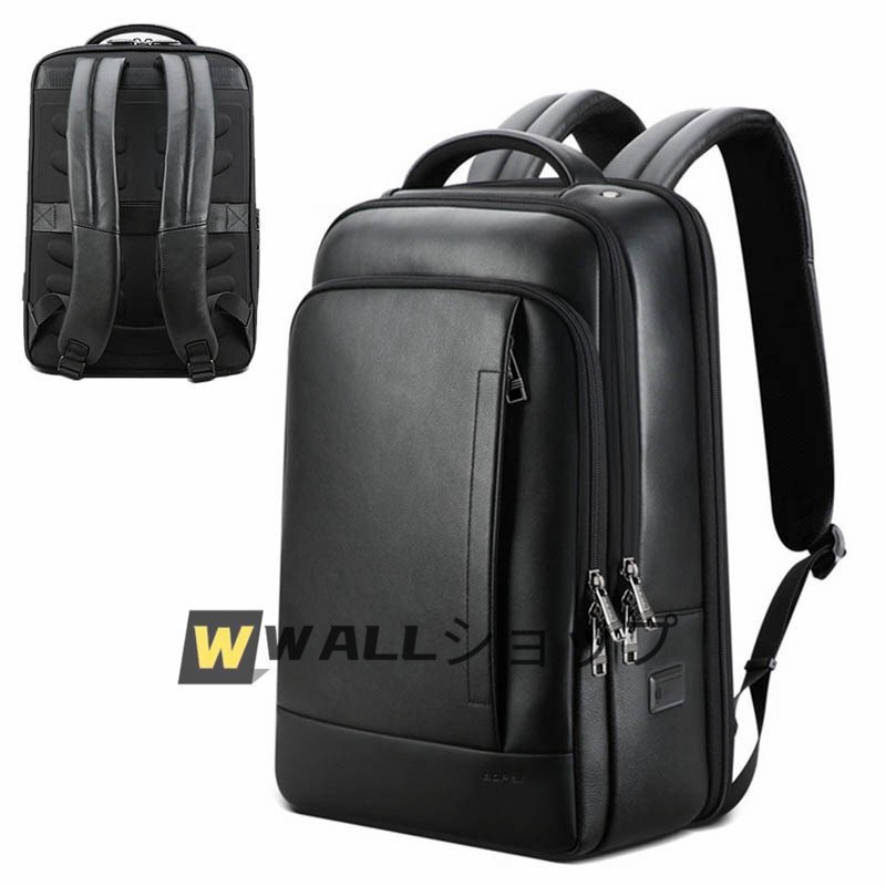 美品登場☆リュック メンズ 本革 牛革 スクエア 15.6インチPC収納 A4 レザー 防水 大容量 リュックサック バックパック ビジネスリュック