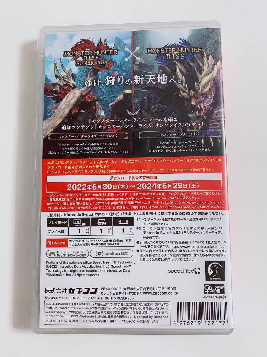 • 『モンスターハンターライズ』と『モンスターハンターライズ:サンブレイク』を同時に購入される方に向けた『モンスターハンターライズ』ゲーム本編と超大型拡張コンテンツ『モンスターハンターライズ:サンブレイク』のセット。