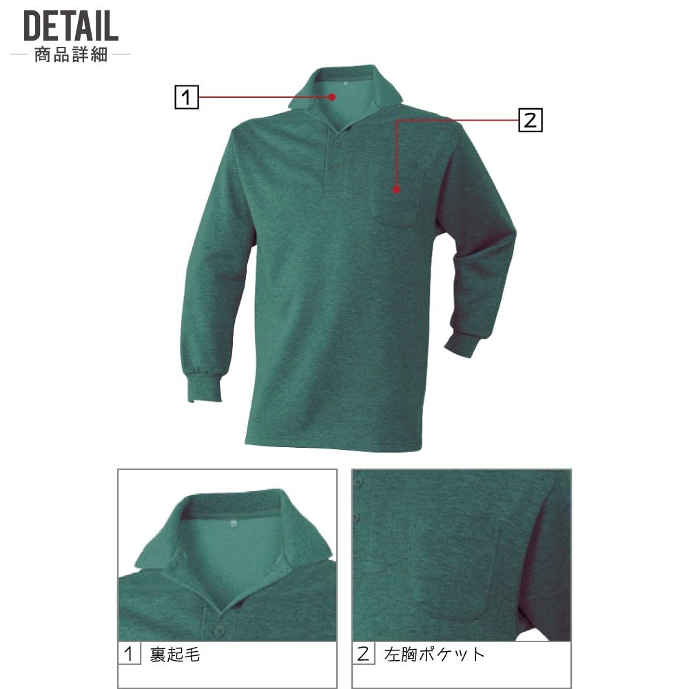特長:裏起毛/ピリング防止加工/胸ポケット付