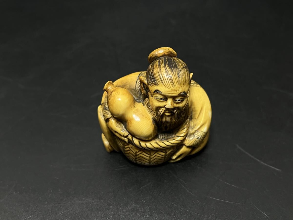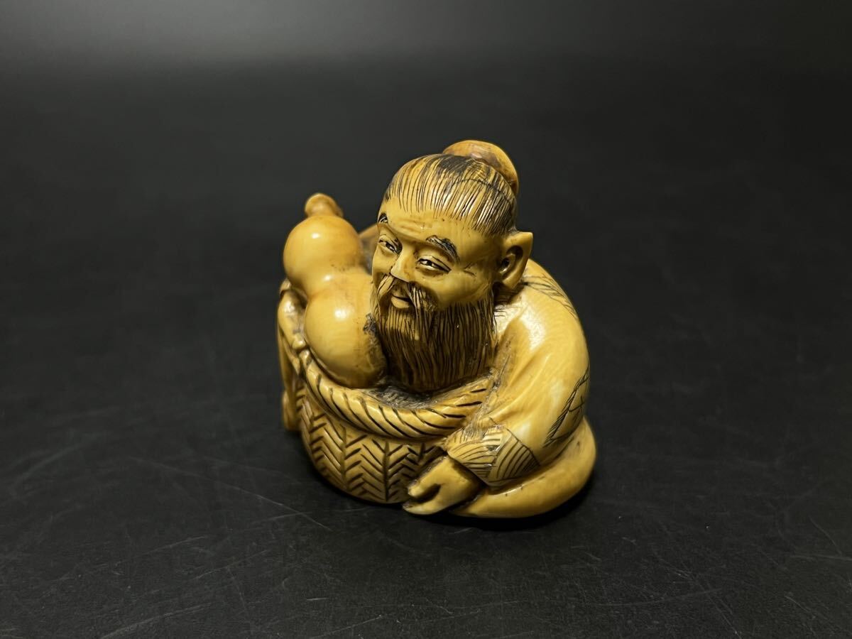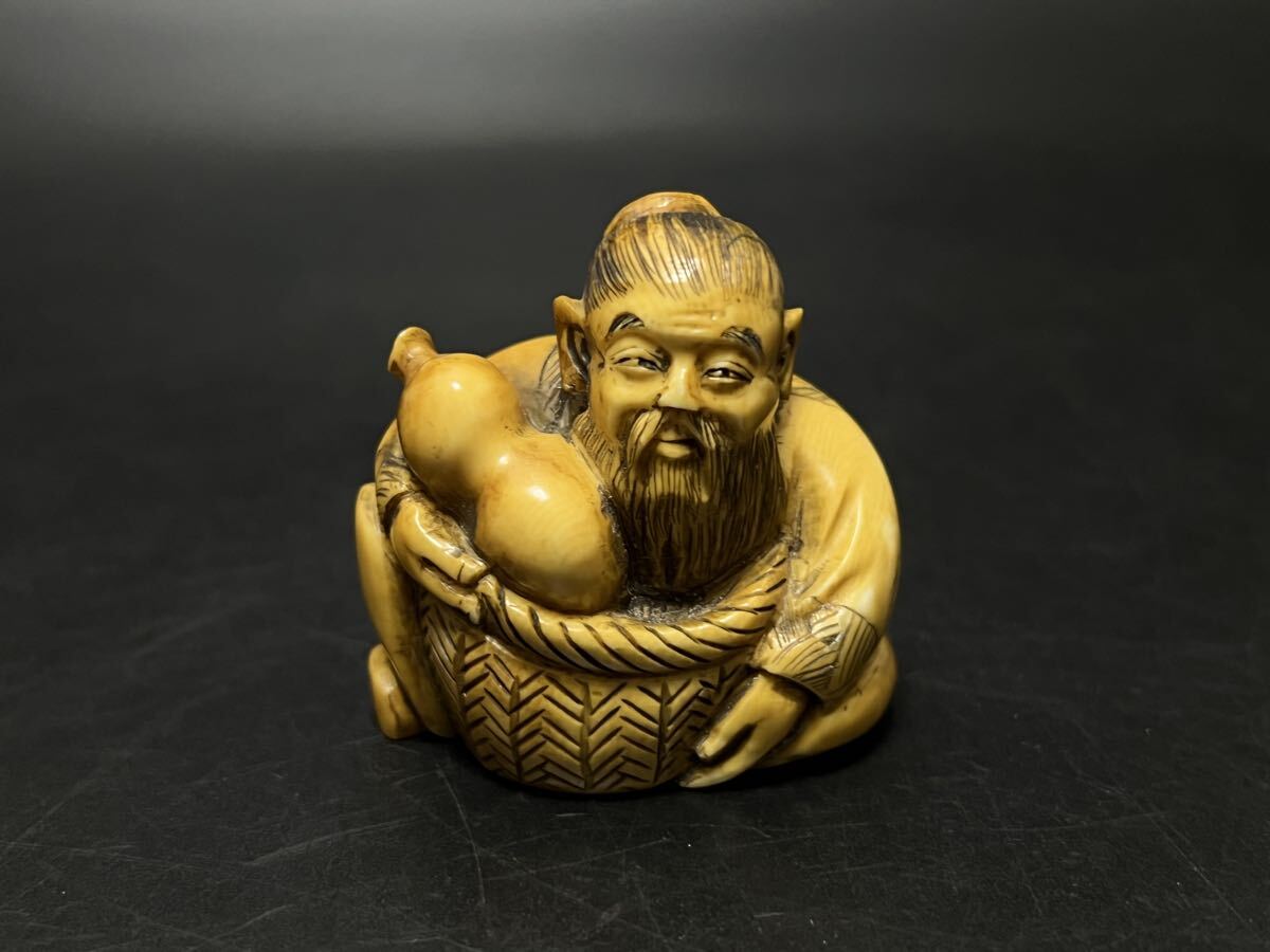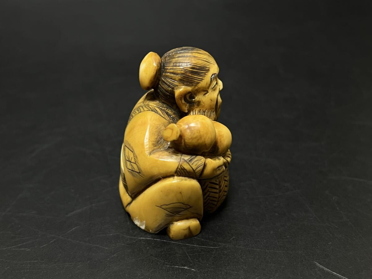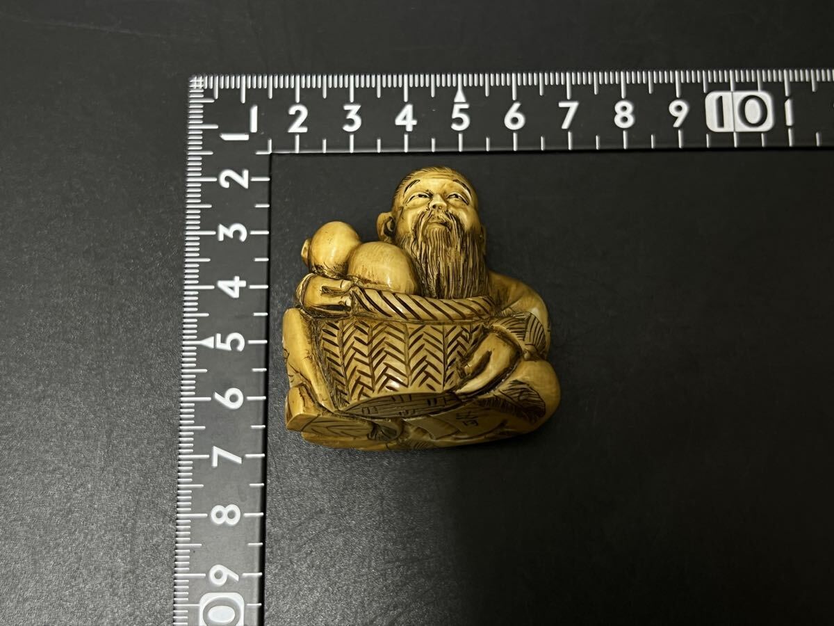 時代物 根付 提げ物 老人 置物 彫刻 縁起物 法月 在銘