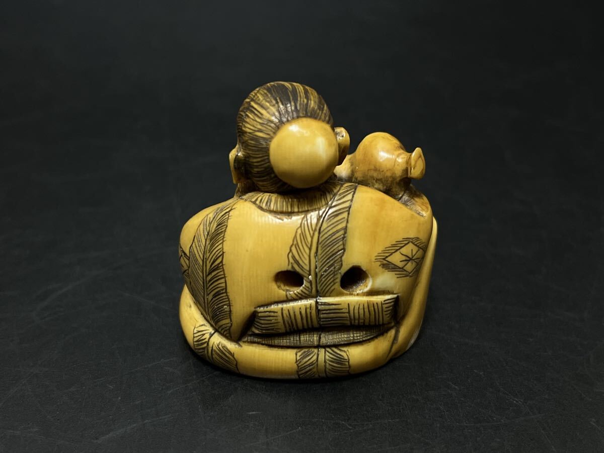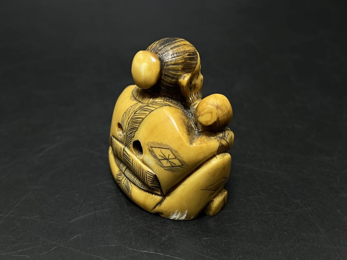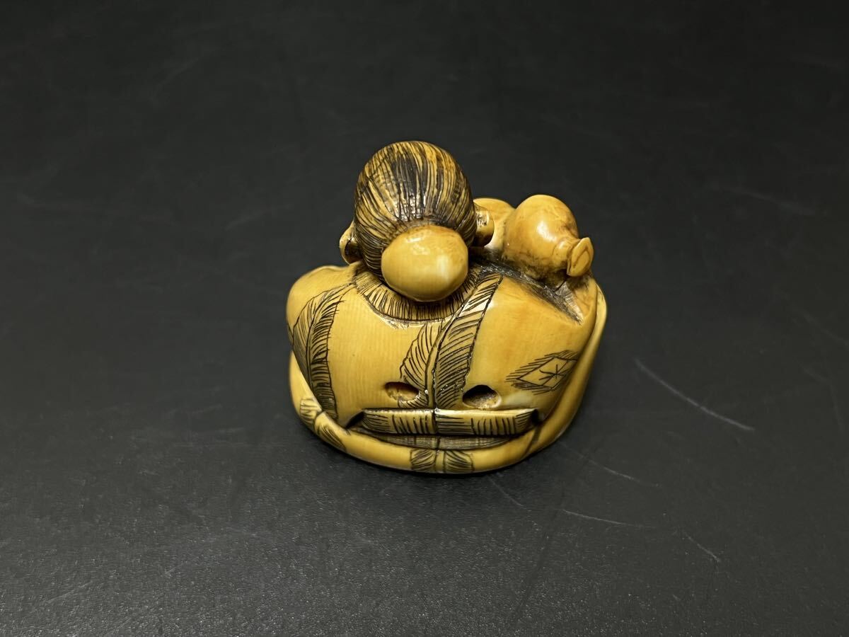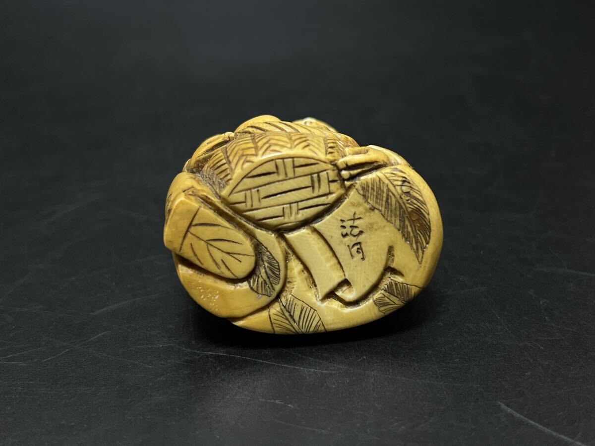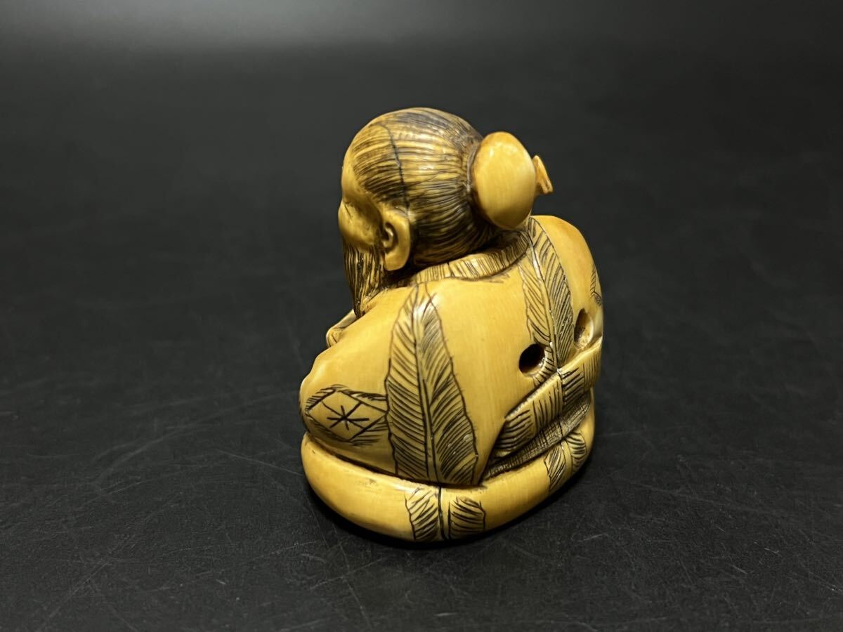 時代物 根付 提げ物 老人 置物 彫刻 縁起物 法月 在銘