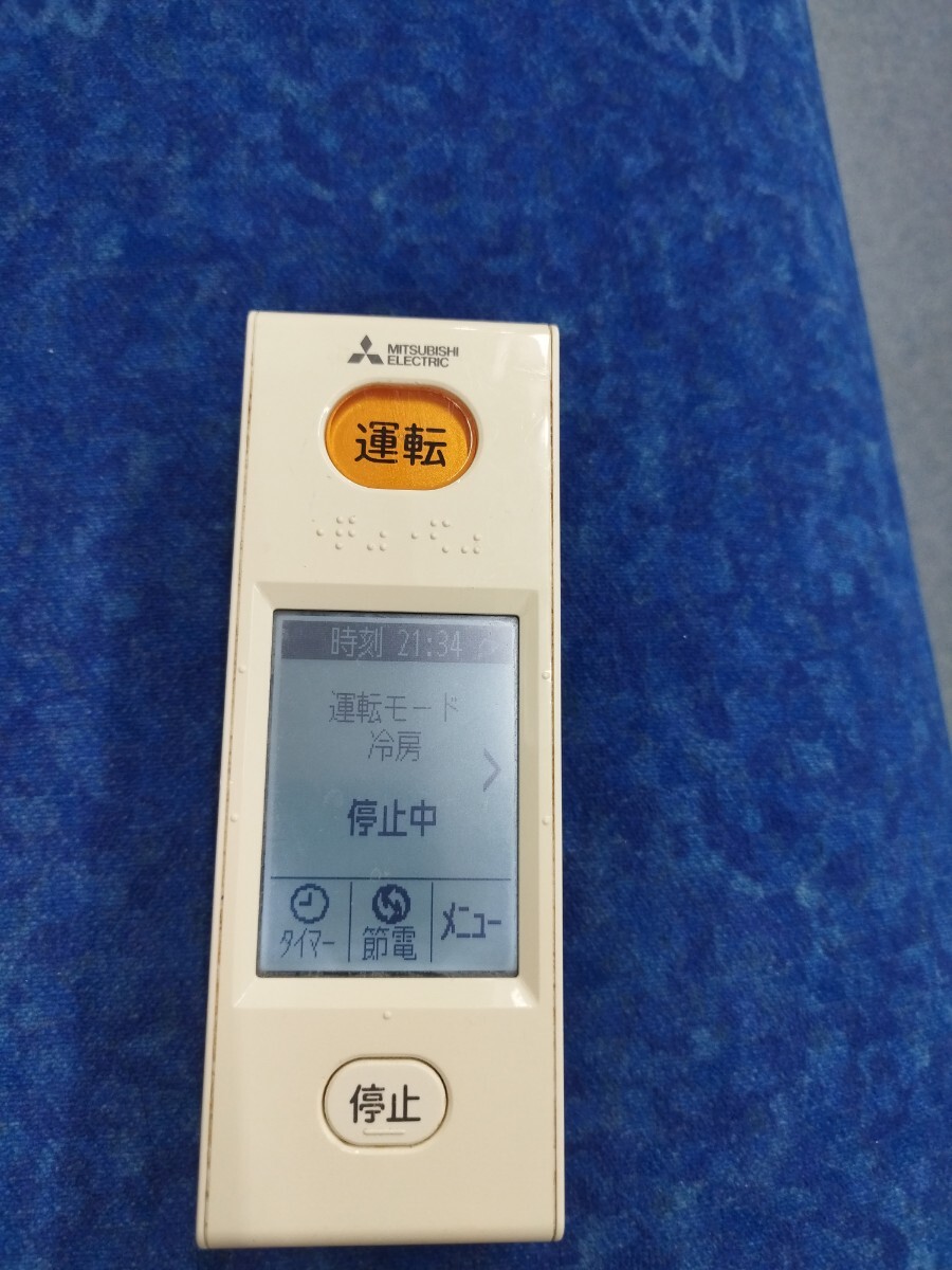 三菱電機製エアコン用リモコン、運転モードやタイマー機能を搭載したスリムデザインの簡単操作モデルです。