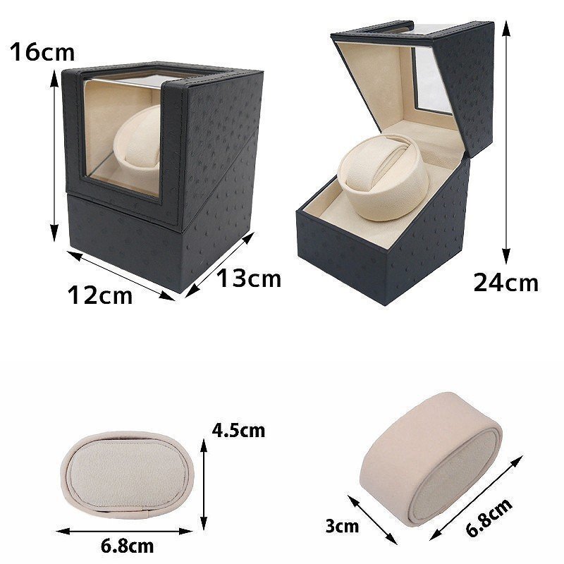 ※商品のカラーは画像一枚目のものになります。 高級感溢れるシックなデザインのワンディングマシーン 型押しPUレザーのボディが上品で豪華な雰囲気を醸し出し、どんなインテリアにも馴染むシンプルなデザインで 時計を守るケースであると同時におしゃれなインテリアとしてお部屋を豪華に飾ってくれます。 ●便利な2種類の給電方式● 付属のUSBケーブル、または単三電池で給電可能です。 有線でも無線でも使え、場所に縛られずに使用出来ます。 ●抜群の静音設計● 磁化なしの設計で、動作中の騒音はほぼゼロに近く、驚くほどの静音性を持っています。 寝室、書斎等に置いて使用しても気になりません。 ●高級感溢れるPUレザー● 汚れや水に強く、傷みにくいPUレザー使用。 精巧なデザインで手触りも滑らかです。 ●巻き上げパターン● 時計回り2分間→停止6分間→逆時計回り2分間→停止6分間のパターンをループします。 ●時計に合わせて枕(クッション)のサイズ調整可能● 腕時計の種類に合わせ、クッションの外側を外して厚みを変えれば クッションのサイズを変えられます、レディース時計もメンズ時計も兼用可能です。 ●商品詳細 サイズ:画像をご参照ください カラー:ブラック(オーストリッチ) 重量:(約) 0.65kg ・内容 ワインディングマシーン本体×1 (腕時計クッション×1) 給電用USBケーブル×1 簡易英文説明書×1 ※単三電池は付属しておりません。 |