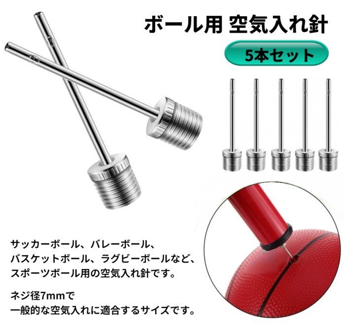 サッカーボール、バレーボール、バスケットボール、ラグビーボールなど、スポーツボール用の空気入れ針です。 |