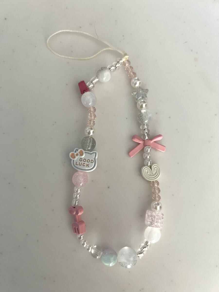 - デザイン: ビーズストラップ、リボン、ハート、幸運のモチーフ