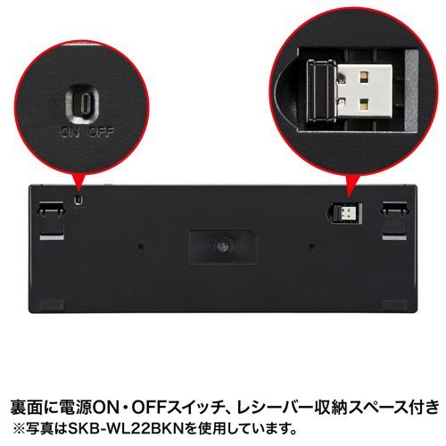 ※配送の送り主はサンワサプライ(株)と記載されています。沖縄・離島配送不可となります。 当店は正規販売代理店です。 特長 電波の到達距離の長い、周波数「2.4GHz」タイプです。最大10m離れた場所からでも動作可能です。 テンキー無しで幅300mm以下の省スペースデザインです。 軽快な入力感が得られるパンタグラフキーボードです。 繰り返し充電できるリチウムイオン電池を内蔵しています。経済的かつエコです。 持ち運び時に便利な電源ON/OFFスイッチ付きです。 USBポートに接続しても邪魔にならない小型レシーバーです。 サイズを極限まで小さくした超コンパクトデザインです。 キーボード裏面にレシーバー収納スペースを確保しています。 キーボードカーブを採用しています。 邪魔な時は立てて収納可能です。 2段階調節が可能なスタンド付きです。 ※ノートパソコンや各メーカー純正キーボードのファンクションキーにあらかじめ割り付けられている特殊機能(画面の明度調整やボリュームのアップダウンなど)は、このキーボードからは操作できません。 メーカー保証期間180日 ※当店発注日からになります。 気をつけておりますが、タイミングによっては在庫切れの場合があります。 ※Windowsが起動する前のコマンド(BIOSの設定、SCSIボードの設定など)は使用できない場合があります。 仕様
