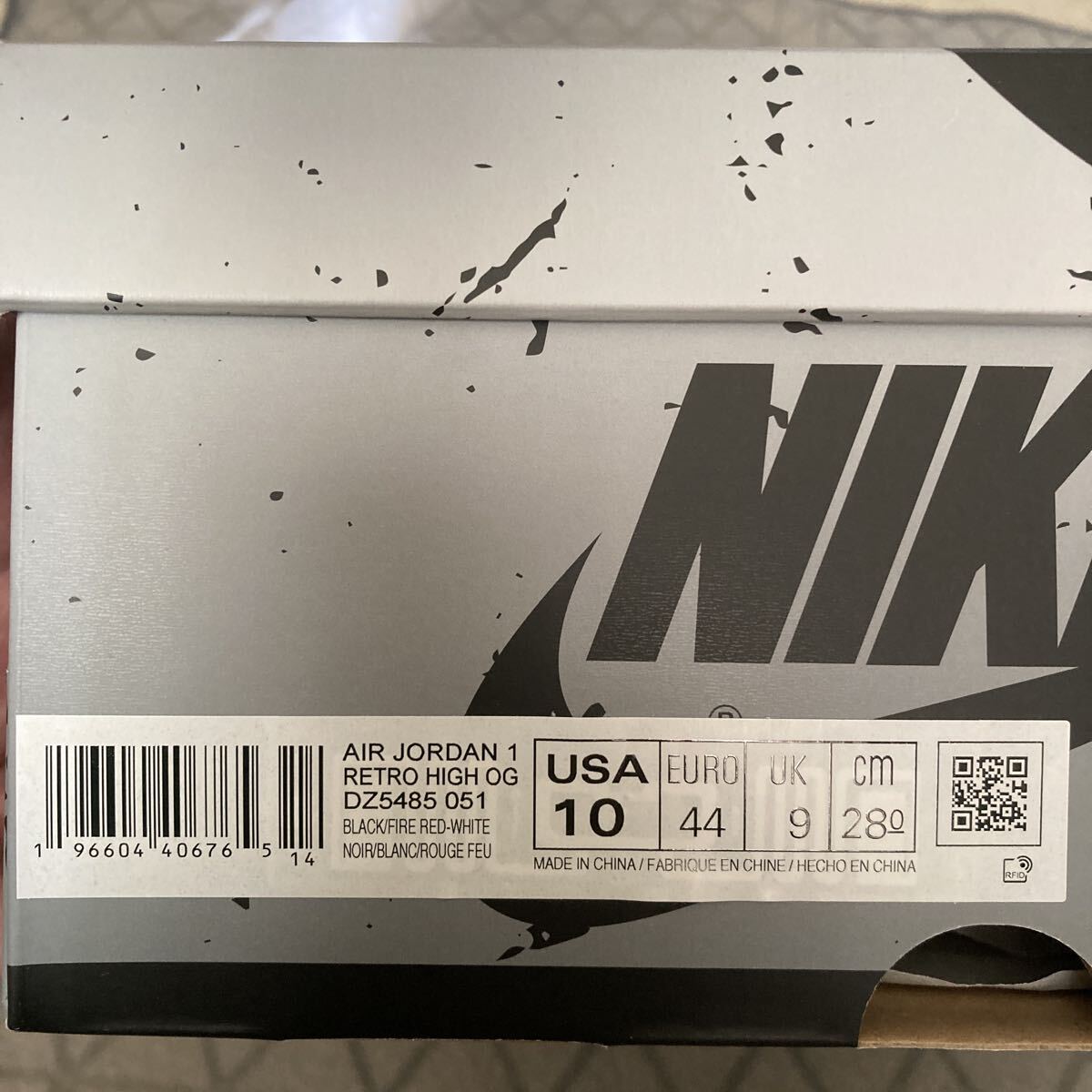 NIKE AIR JORDAN 1 RETRO HIGH OG "BLACK AND SMOKE GREY" DZ5485-051 (ブラック/ファイヤーレッド/ライトスモークグレー/セイル)US10