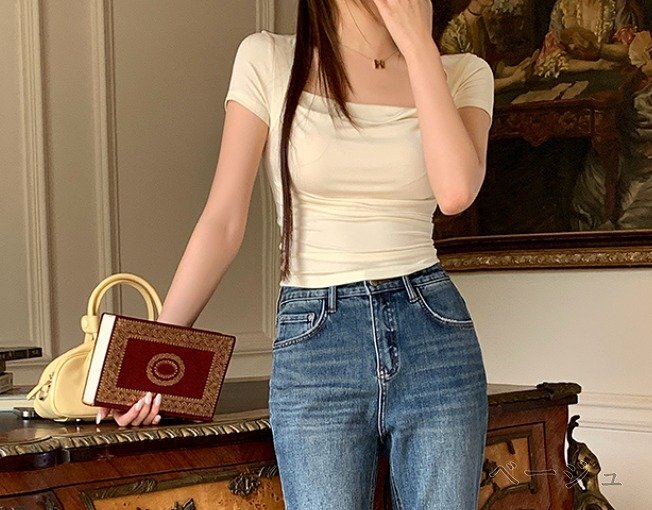 【M】着丈約49cm バスト約74cm 肩幅約35cm 袖丈約14cm