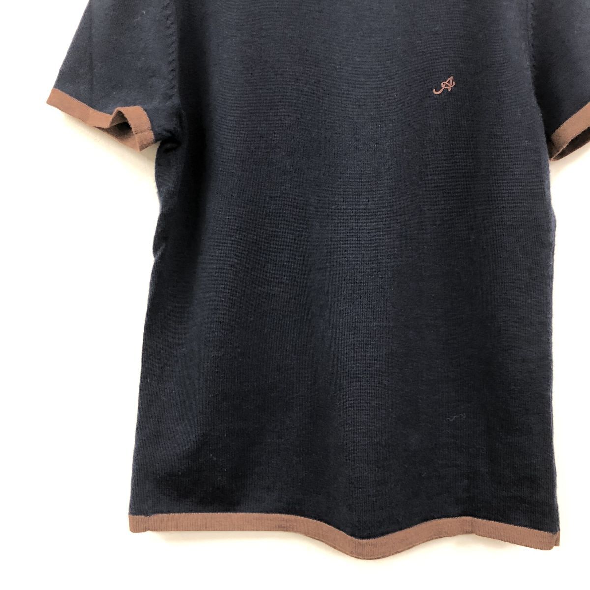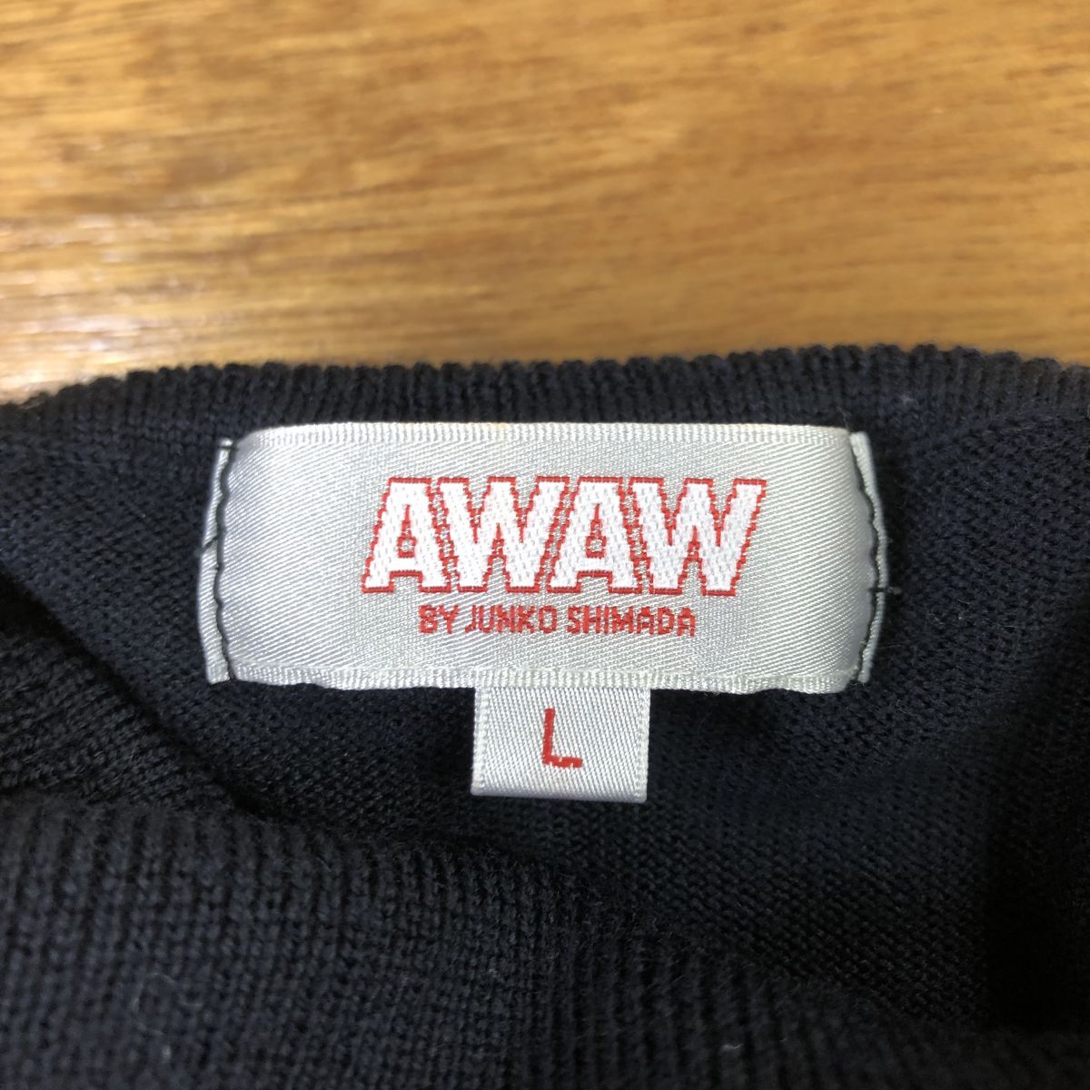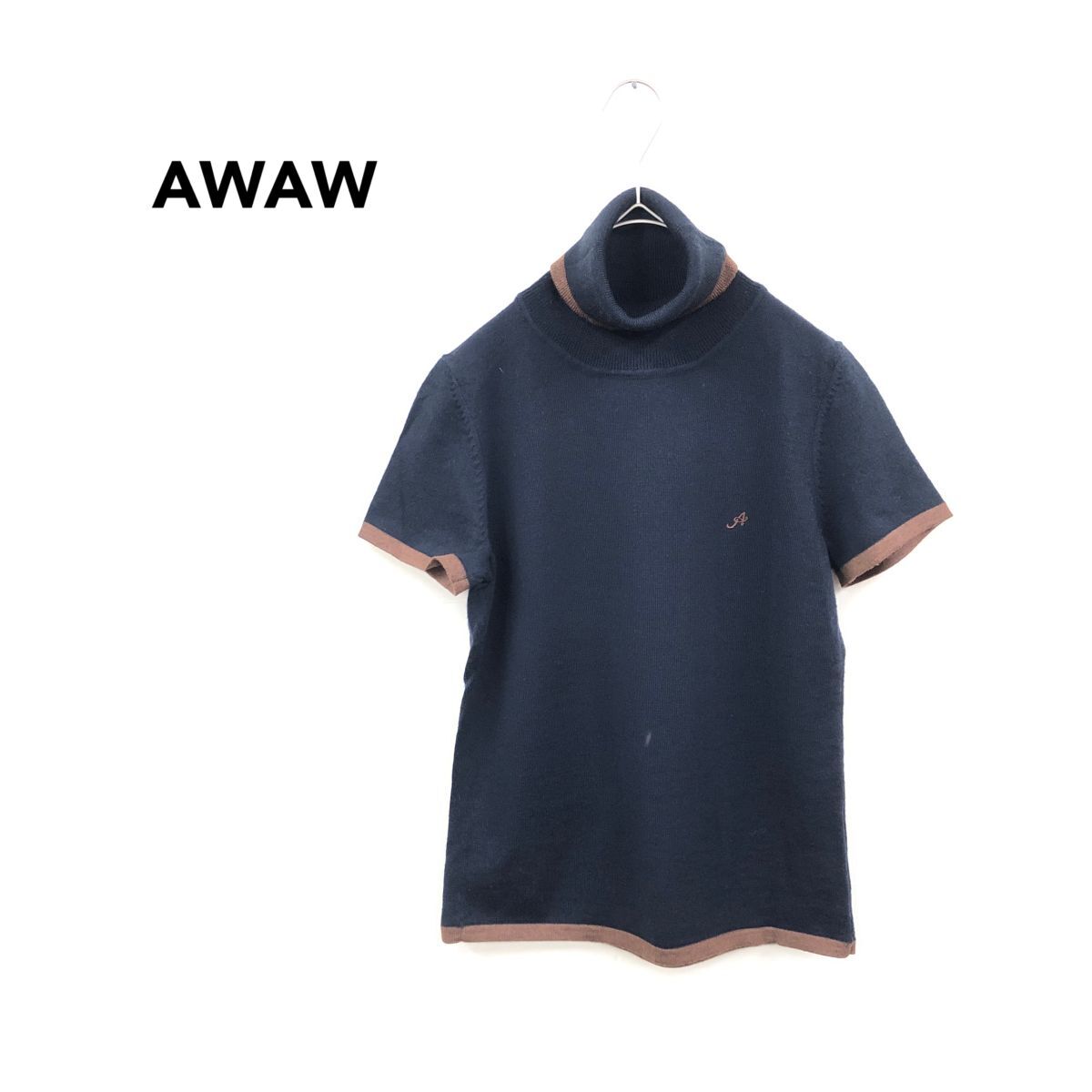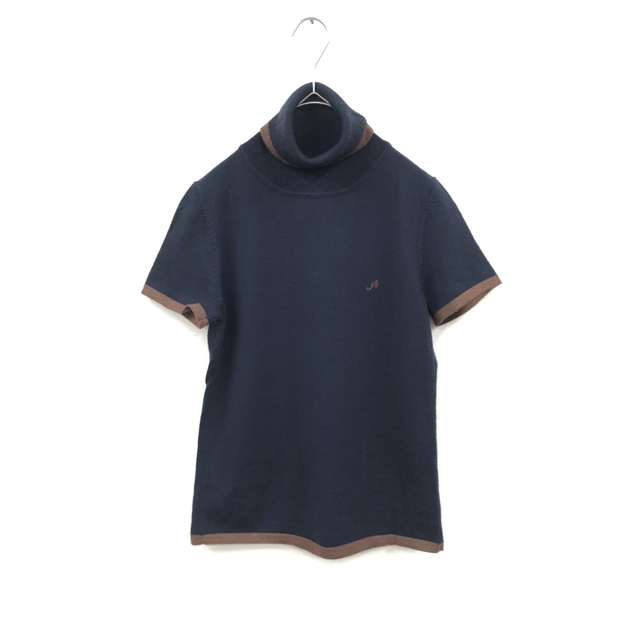 2N2346-Y◆AWAW BY JUNKO SHIMADA アワーバイジュンコシマダ タートルネック半袖ニット ハイゲージ レディース ◆sizeL ネイビー ウール
