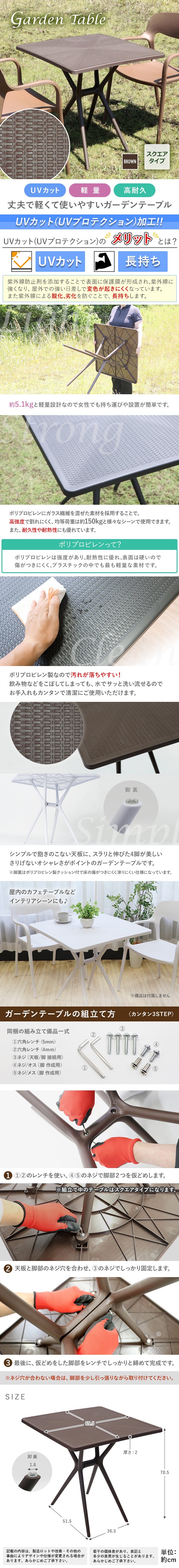 | 商品名 | 送料無料 プラスチックテーブル ガーデンテーブル UVカット スクエアテーブル 軽量 頑丈 コンパクトサイズ シンプルデザイン お手入れカンタン 簡単組立 インテリア ガーデン テーブル ポリプロピレン PP プラスチック gtabled |