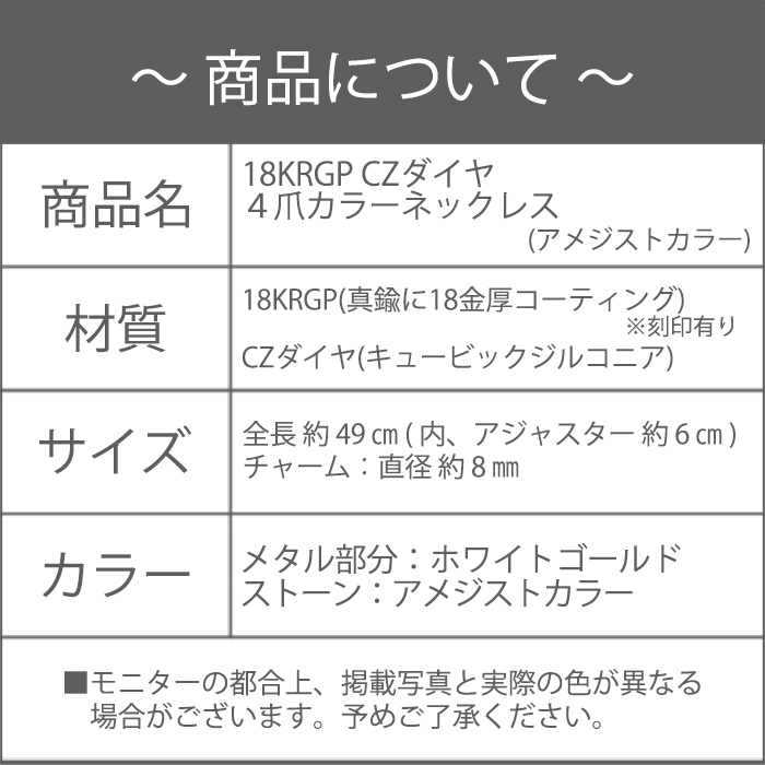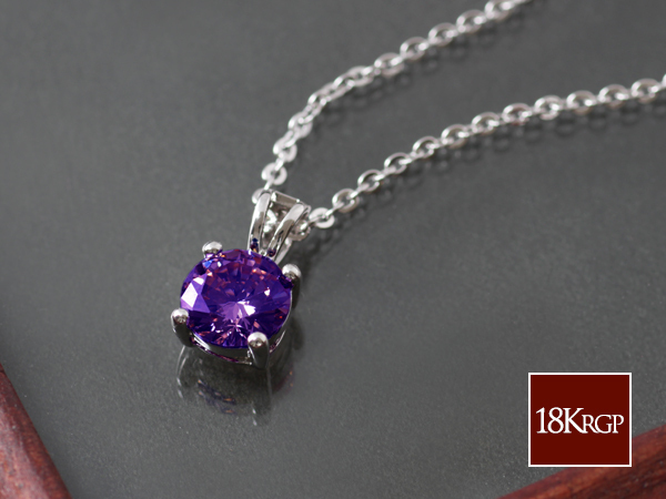 新品/ネックレス/18KRGP/アメジスト/ダイヤ/シルバー/18金/K18/レディース/ホワイトゴールド/一粒/CZ/2月/誕生石/カラー/紫/WG