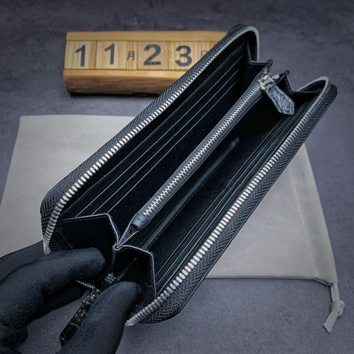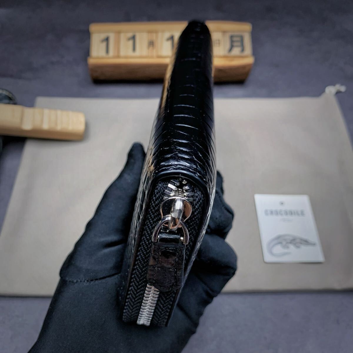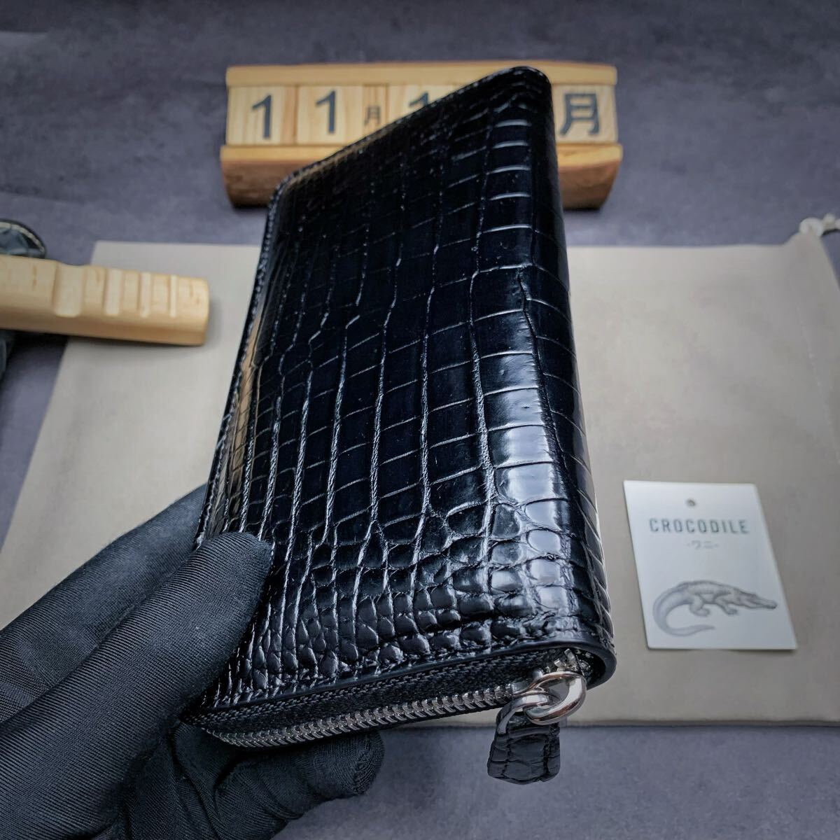 お財布を作る際にクロコダイル革をセンターで丸々一枚でとり、継ぎ目のない作りのお財布のことを指します。センター1枚取りの場合、当然1枚の革からメインのお財布は1点しかつくれませんので一般的にも非常に贅沢な裁断とされています。