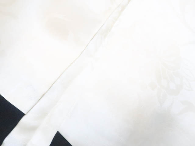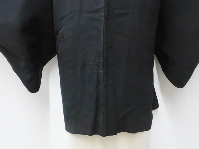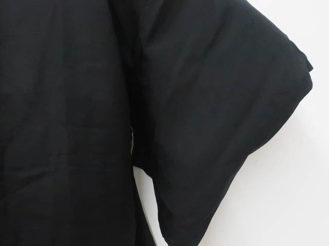 リサイクル商品のため、羽裏、ひも、後ろ身頃に薄汚れがございますが着用可能なお品です。 地色は 黒です。 1枚目の画像が近いお色かと思われます。 素材は正絹です。 |
