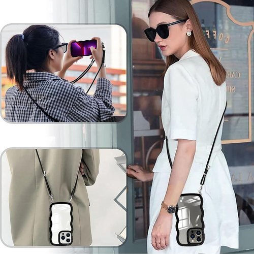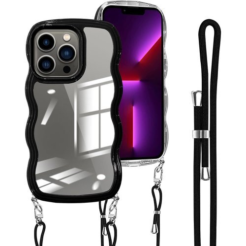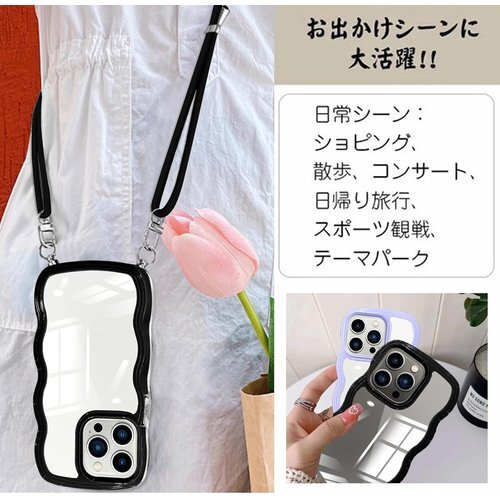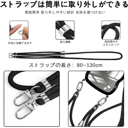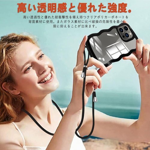 iPhone 13 Pro ケース クリア ショルダー iPhone13Pro カバー 肩がけ 首掛け 韓国 おしゃれ 斜めかけケース 可愛い かわいい 薄型 透明 軽量 シリコン TPUバンパー アイフォン 13 Pro スマホケース ブラック 857